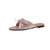 2025 лето новый корейская версия мода плоская подошва атласные прохладные тапочки женские с бантом для улицы праздничные пляжные тапочки женские