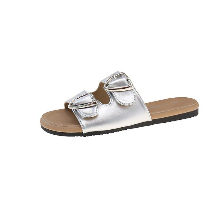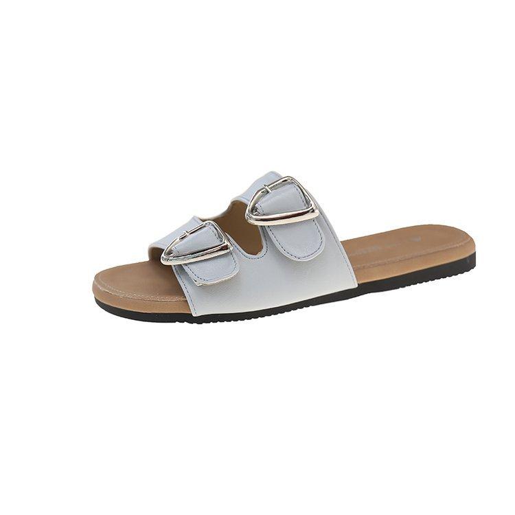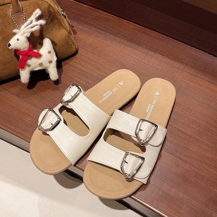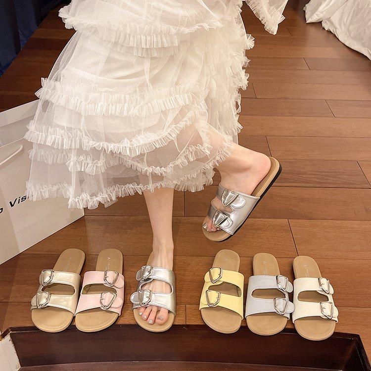 Flat bottom one-word drag women's model 2025 summer new one-pedal lazy versatile outer wear belt buckle beach cool slippers