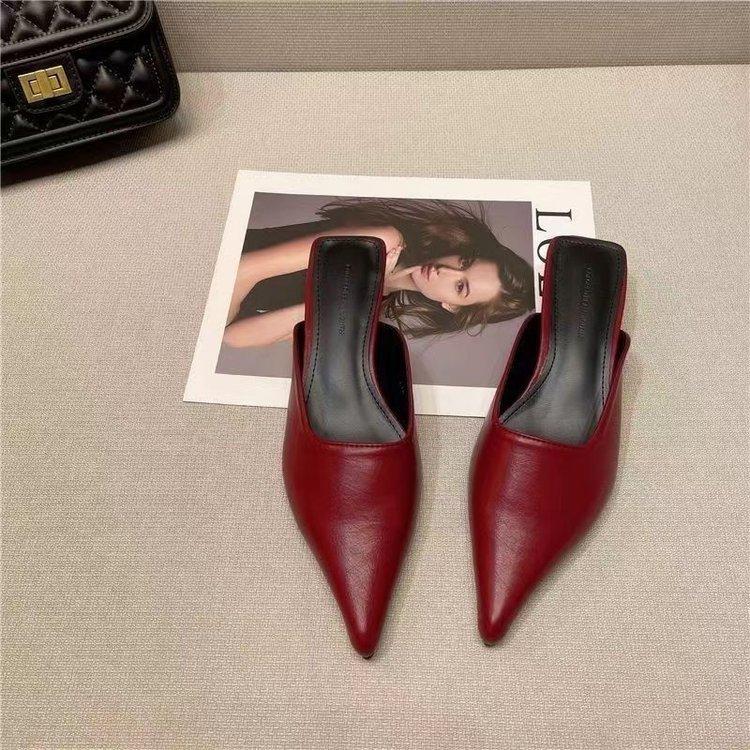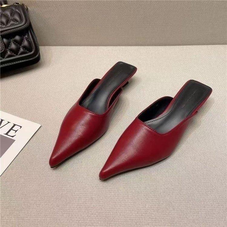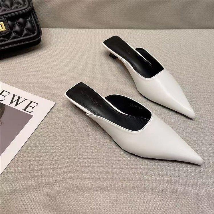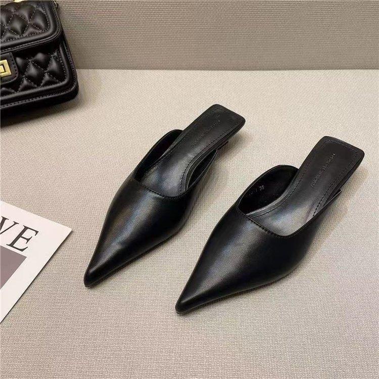 Баотоу полутапочки женские летние универсальные черные с острым носком на тонком каблуке на маленьком каблуке женская обувь удобные модные для узких ног носить прохладные тапочки