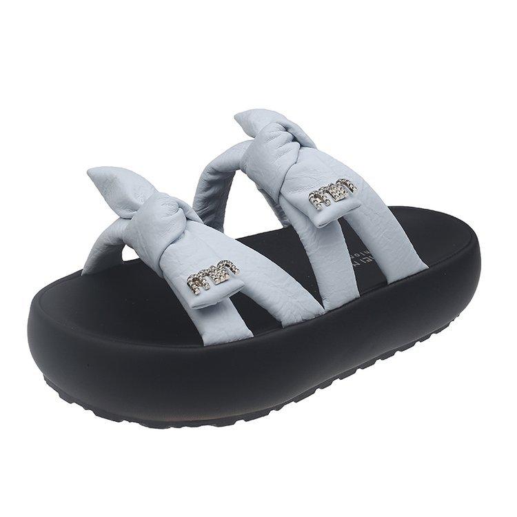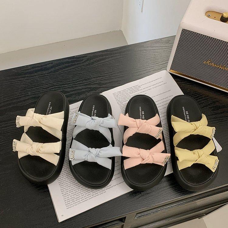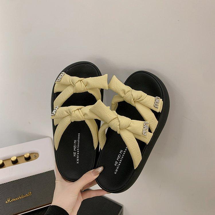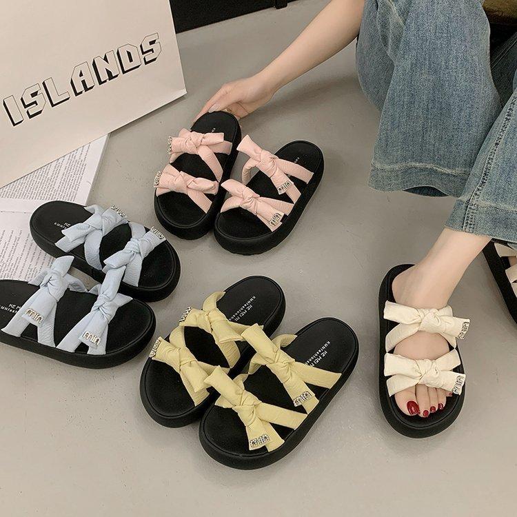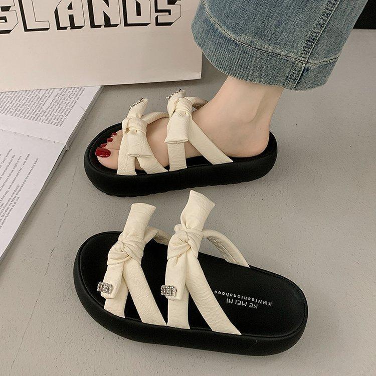 Крутые шлепанцы на толстой подошве для женской уличной обуви 2025 новый летний темперамент французская мода универсальный бант шлепанцы, наступающие на дерьмо