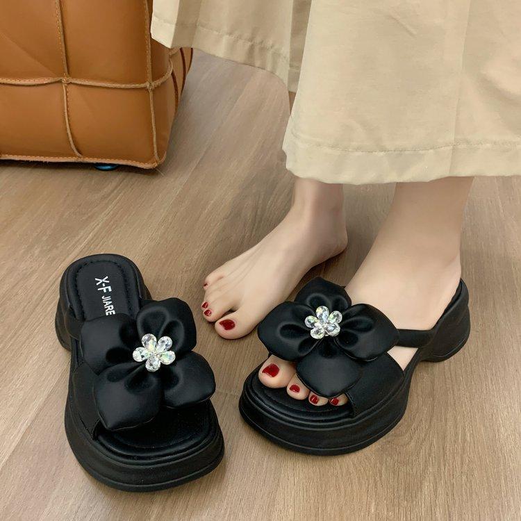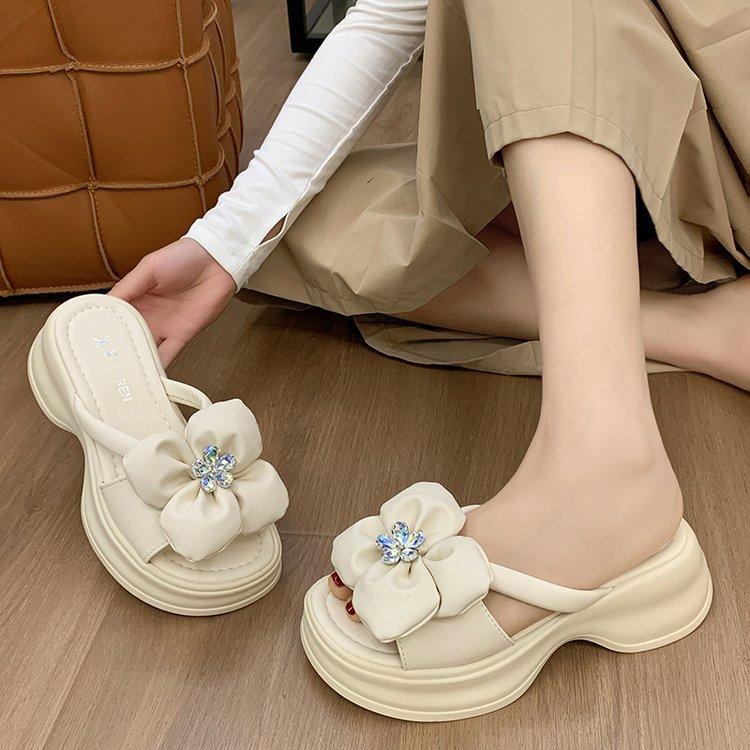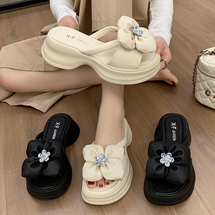 Крутые шлепанцы на толстой подошве женская мода верхняя одежда 2024 лето внешняя торговля новые повседневные цветочные однословные туфли на подошве-маффин пляжная обувь
