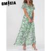 GMXIA 6-цветное платье макси с V-образным вырезом и оборками, короткие рукава, приталенная талия, высокая талия, струящийся подол, милое цветочное шифоновое платье, женская одежда