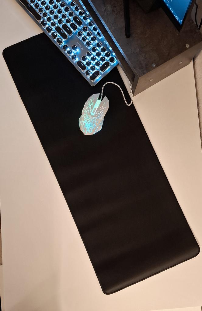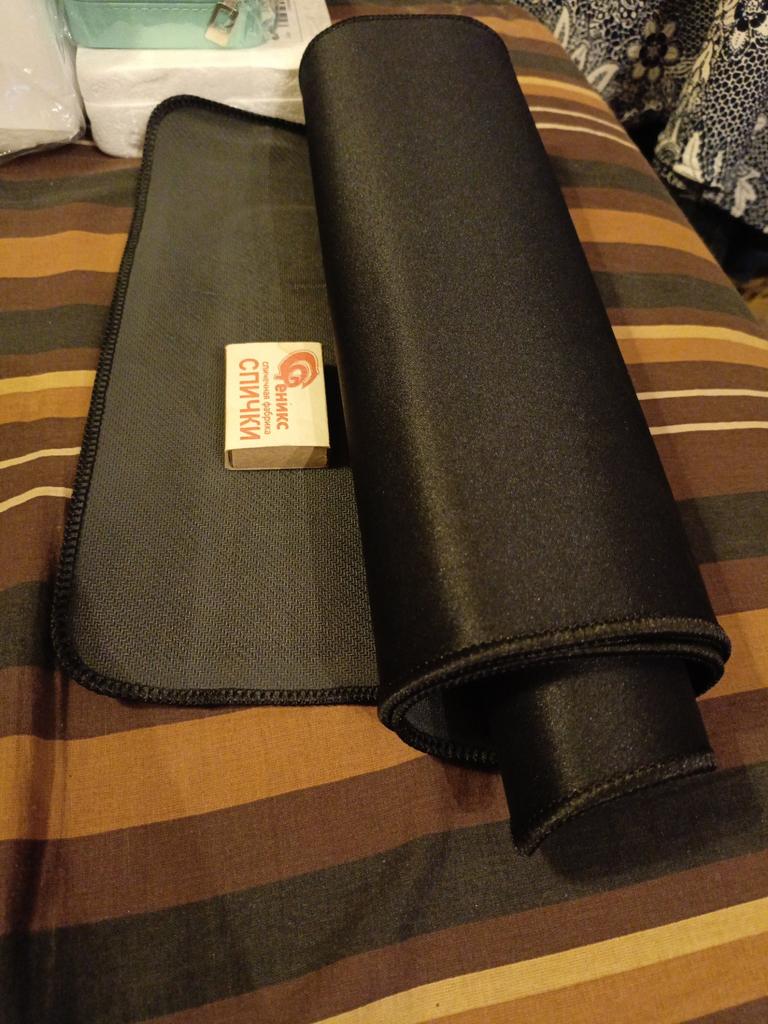Отличный большой коврик для мышки, застилает всю рабочую зону стола, клавиатура не ездит и не царапает стол, мышка прекрасно работает с таким ковриком