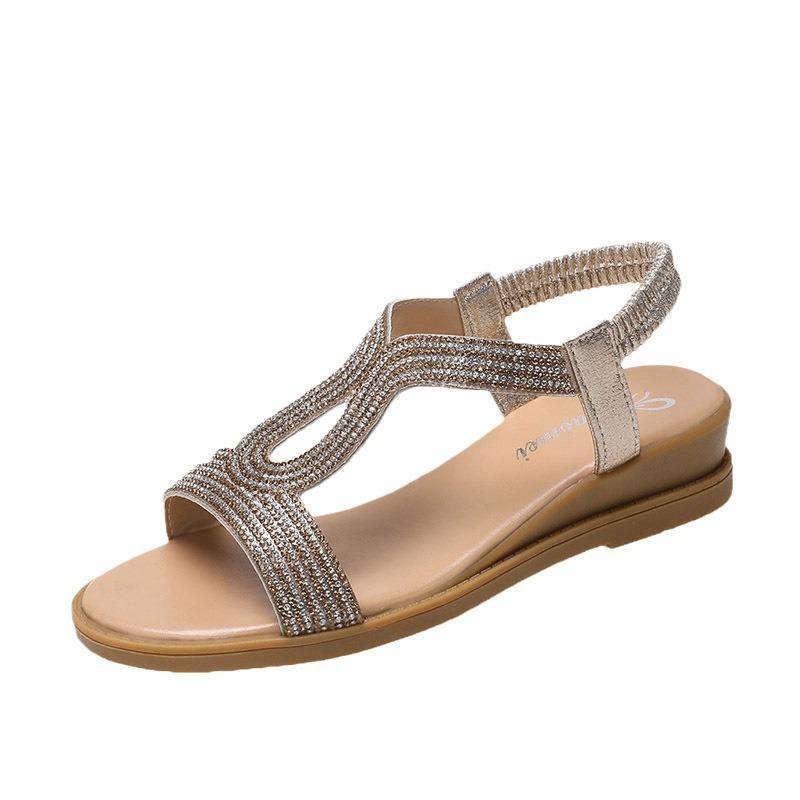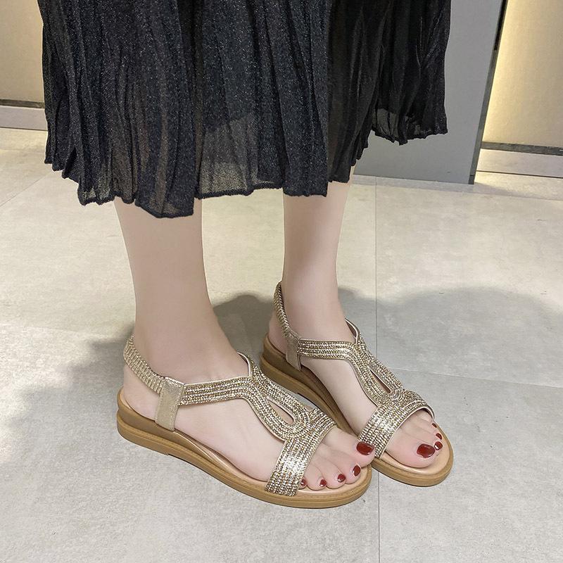 Летние дизайнерские сандалии на платформе Женская мода Повседневная римская обувь Женская однотонная обувь с кристаллами Sandalias Mujer