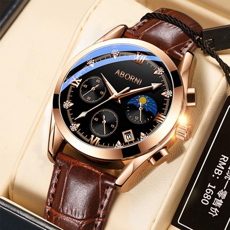 ABORNI Роскошные мужские часы-хронограф Водонепроницаемые Светящиеся Мужские часы Кожаные Высококачественные Спортивные Мужские Кварцевые Часы — купить товар онлайн с бесплатной доставкой по всему миру!