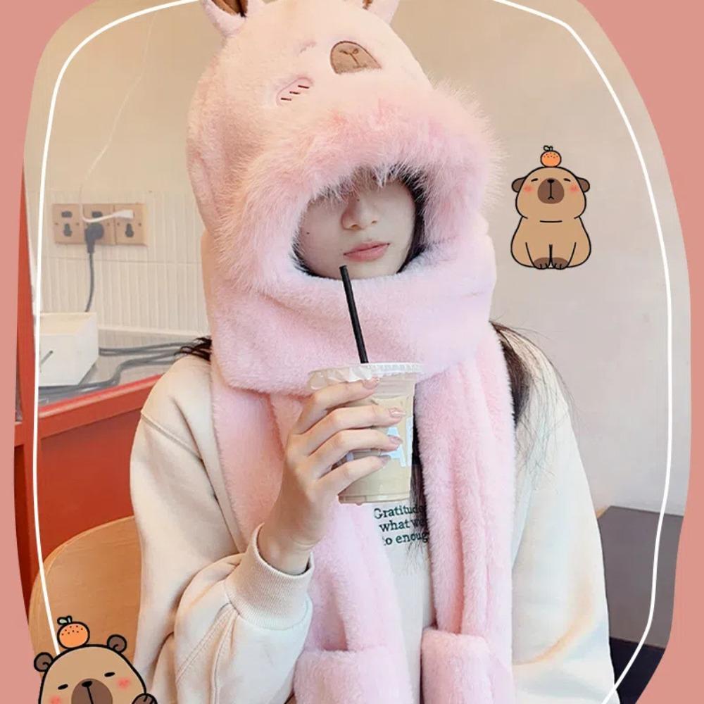 Корейский стиль Capybara шапка шарф перчатки комплект мультфильм 3 в 1 шапка универсальный плюшевый шарф с капюшоном для отдыха на природе
