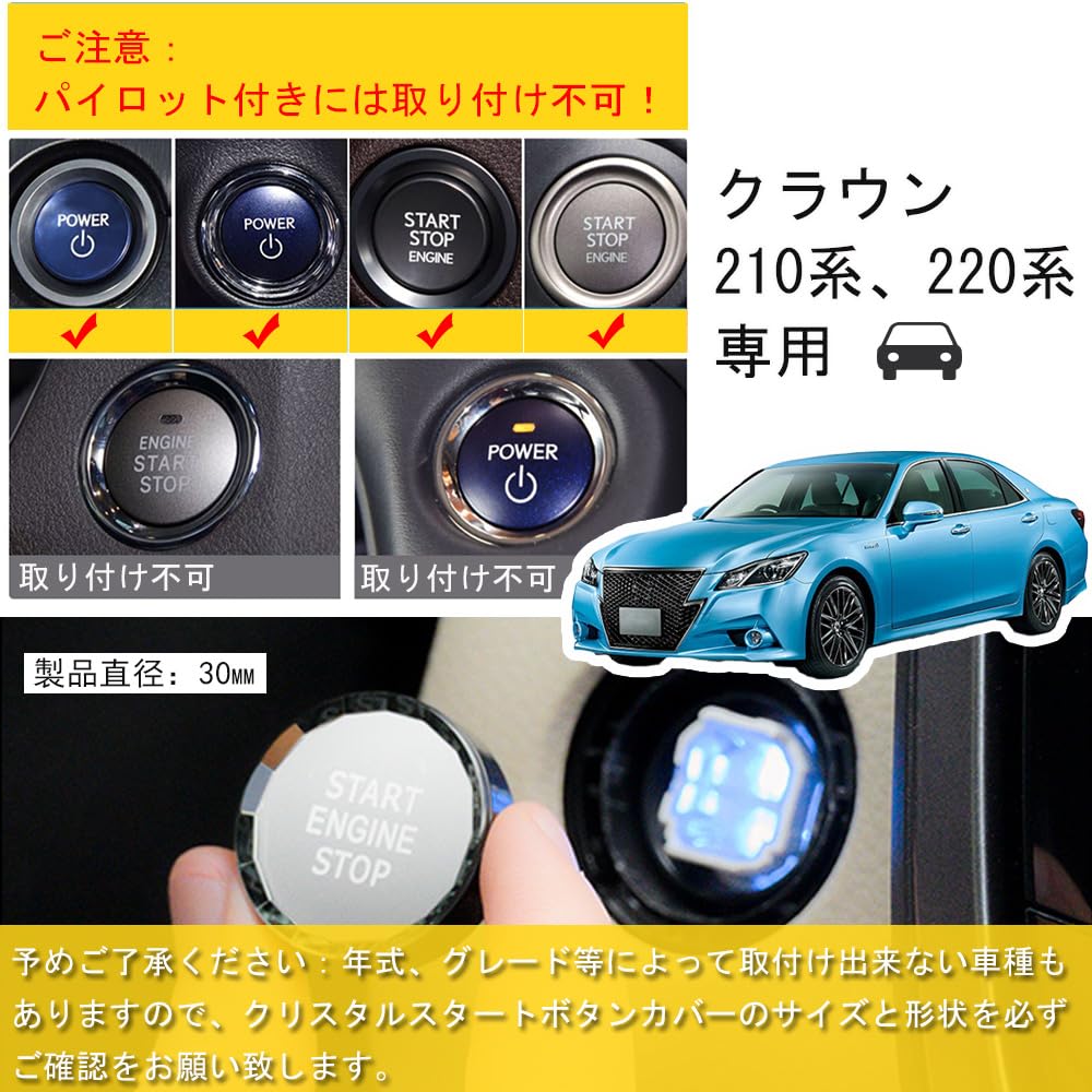 [Совместимые модели] Toyota Crown серии 210, серии 220 (уведомление: Хотя она специально разработана для серий Crown 210 и 220, есть некоторые модели, на которые ее невозможно установить в зависимости от года выпуска и класса, поэтому обязательно проверьте размер и форму крышки кнопки запуска.)