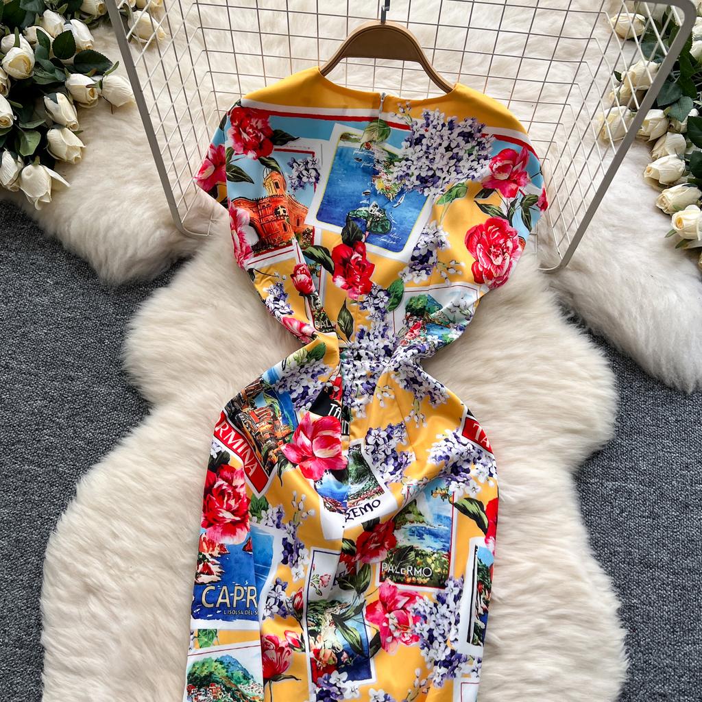 Летние женские дизайнерские винтажные принты с розами на подиуме короткие рукава для офисных вечеринок облегающие платья-карандаши