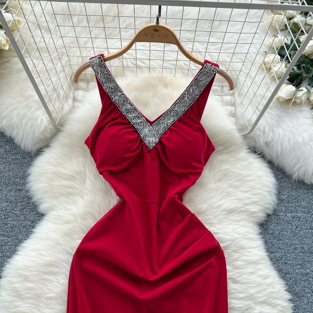 Летние женские V-образный вырез без рукавов бисерные однотонные вечерние платья-русалка с длинным миди-платьем — купить товар онлайн с бесплатной доставкой по всему миру!