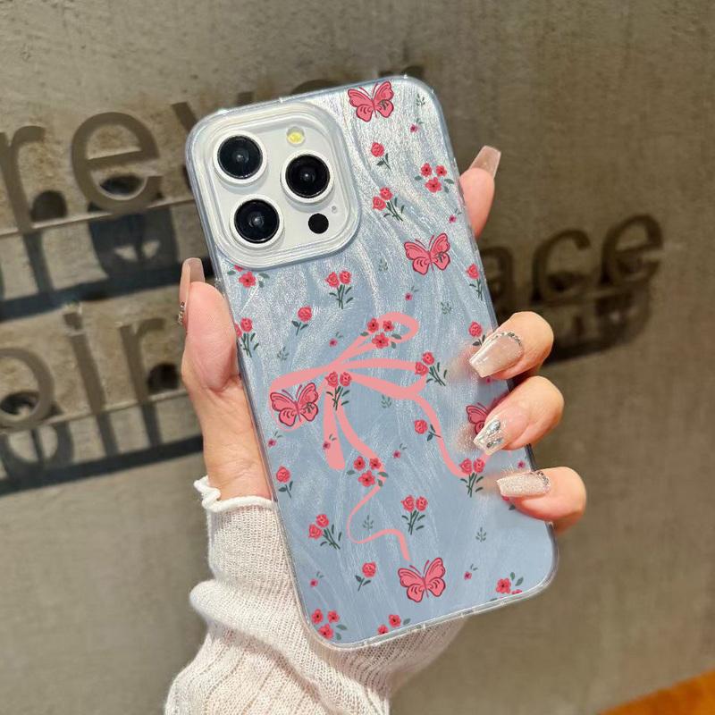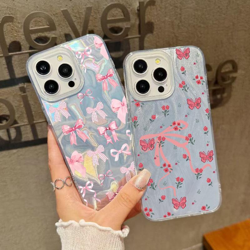Для iPhone 16 Pro Max 15 Pro 14 13 12 11 чехол для телефона с бантом и цветочным узором блестящий тонкий ударопрочный TPU прозрачный мягкий край жесткий PC задняя крышка