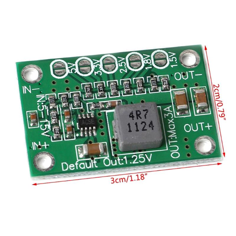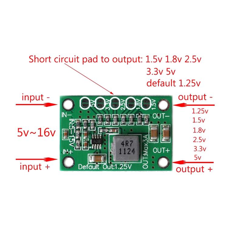 2. Это super mini DC-DC понижающий модуль преобразователя напряжения, поддерживающий вход DC 5-16V и 1.25V / 1.5V / 1.8V / 2.5V / 3.3V / 5V фиксированный выход напряжения;