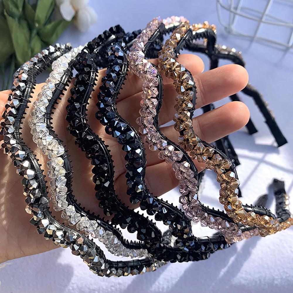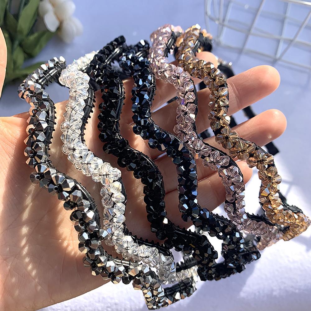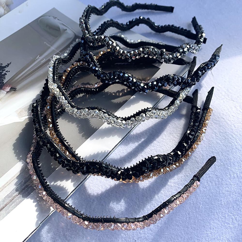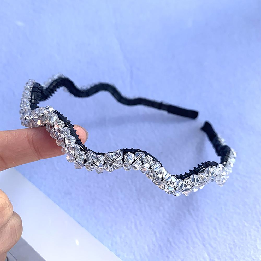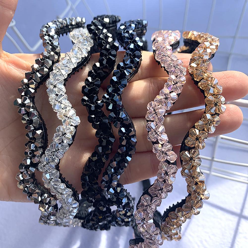 Sweet Korean Women Hairband Girls Headdress Flower Crystal Hair Hoop Hair Accessories Wave Headband