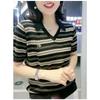 Футболка с короткими рукавами для женщин, новые популярные летние повседневные универсальные топы для мам, модная полосатая рубашка-поло, замедляющая старение