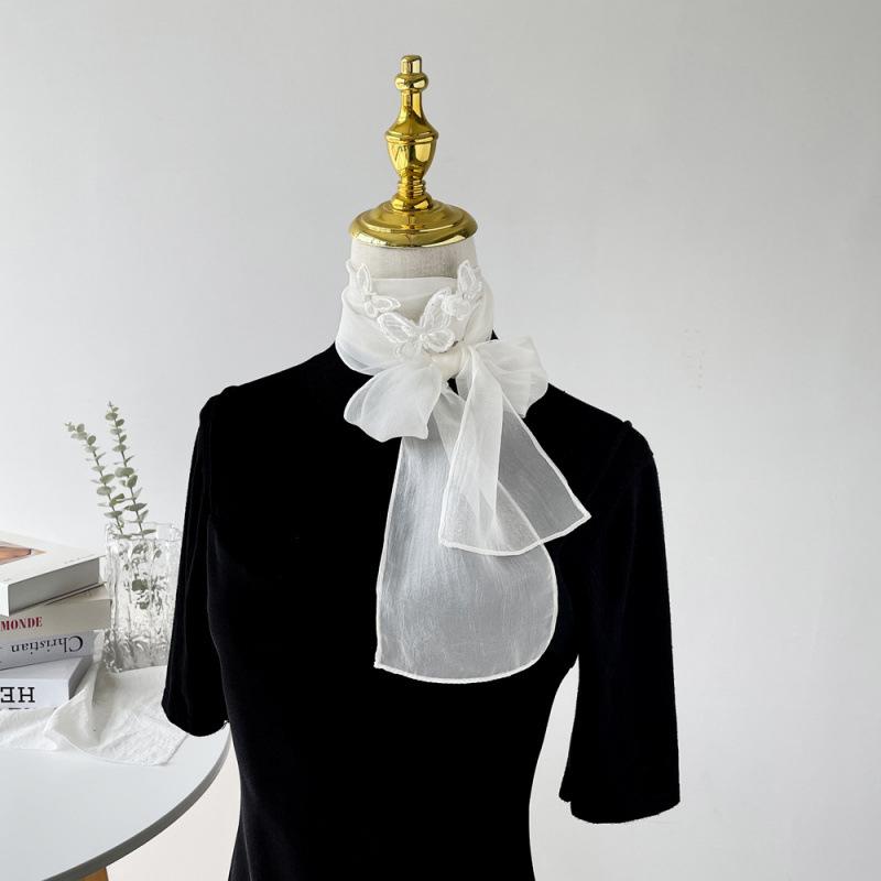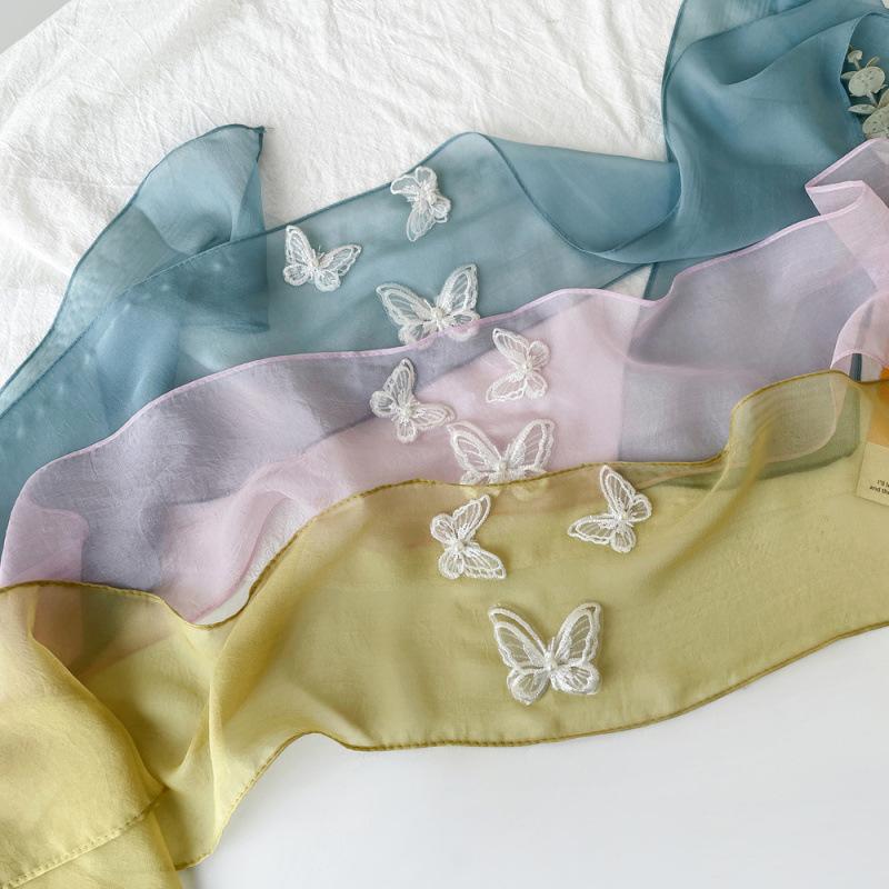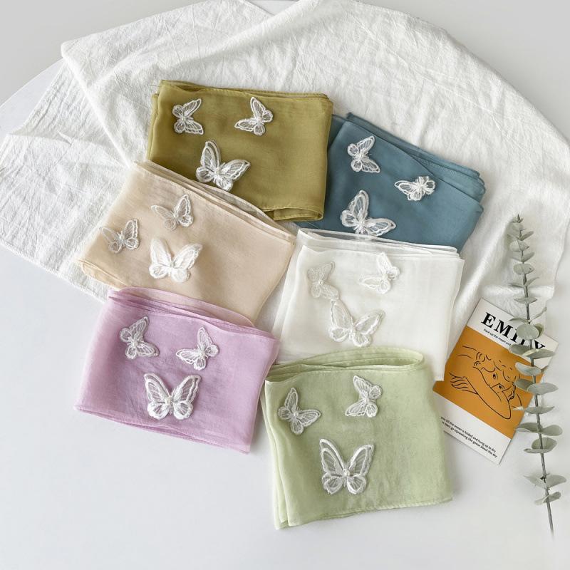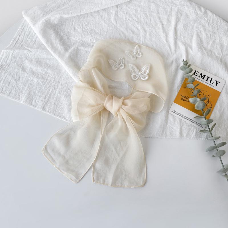 Шарф с бабочкой, однотонный, для женщин, кружевная повязка для волос в стиле феи, тюрбан, французский нишевый элегантный шарф