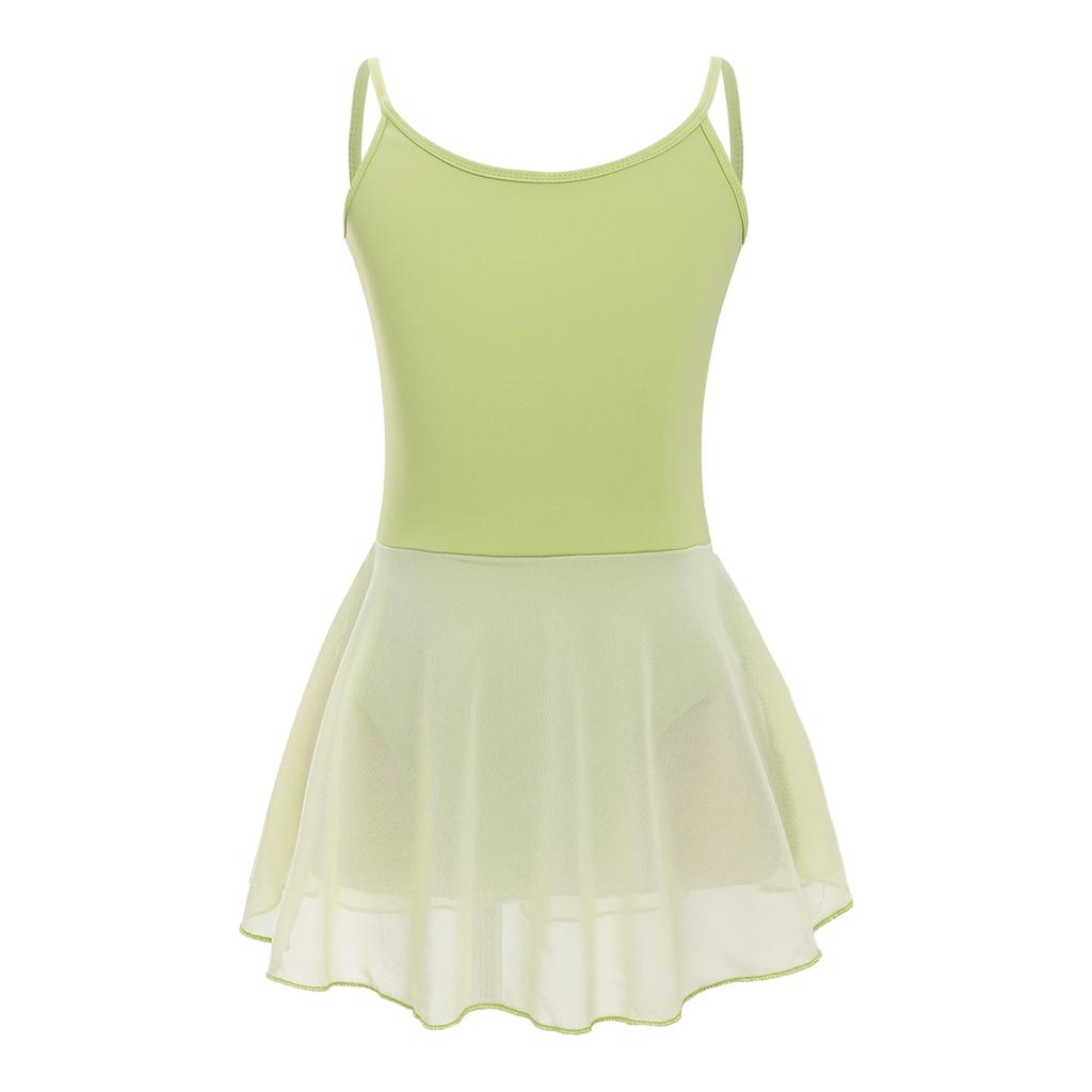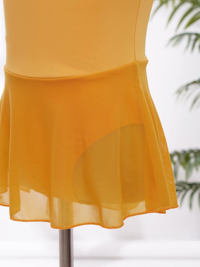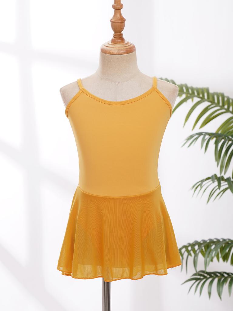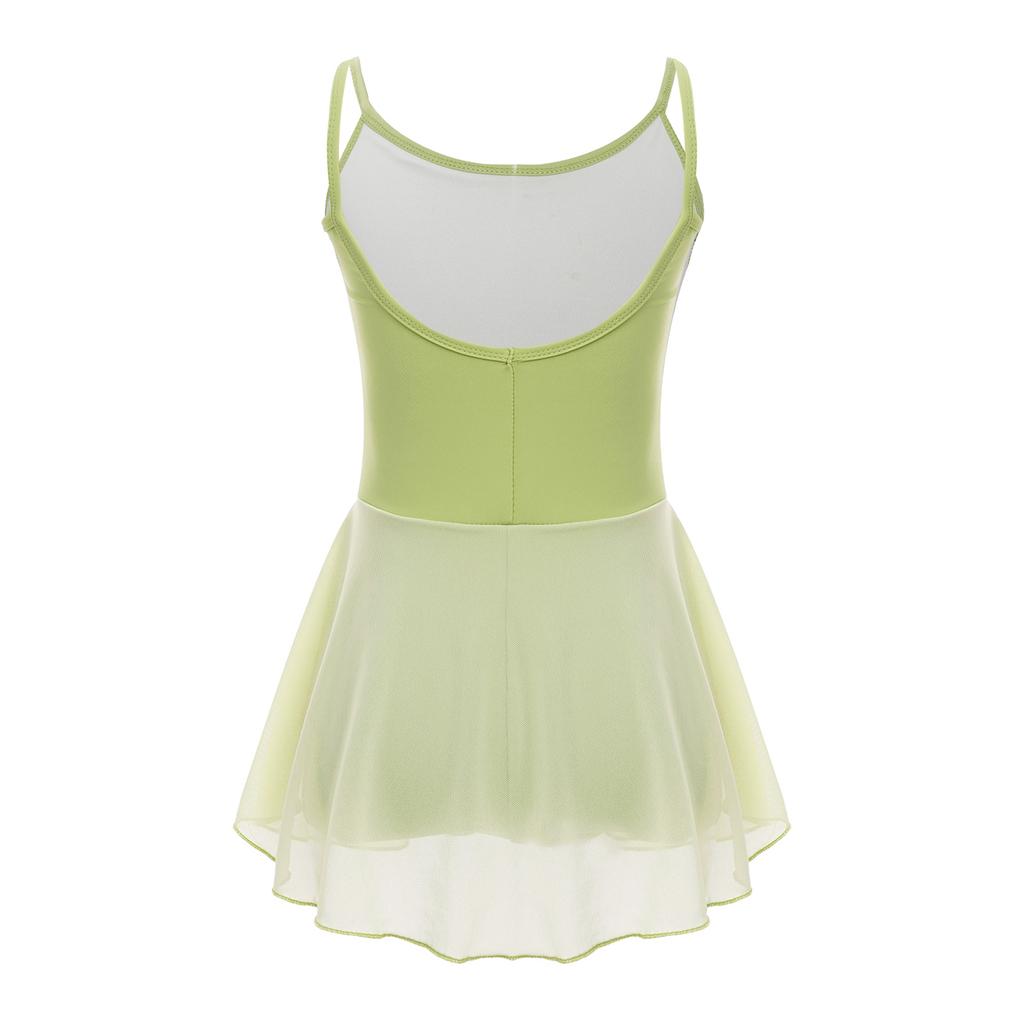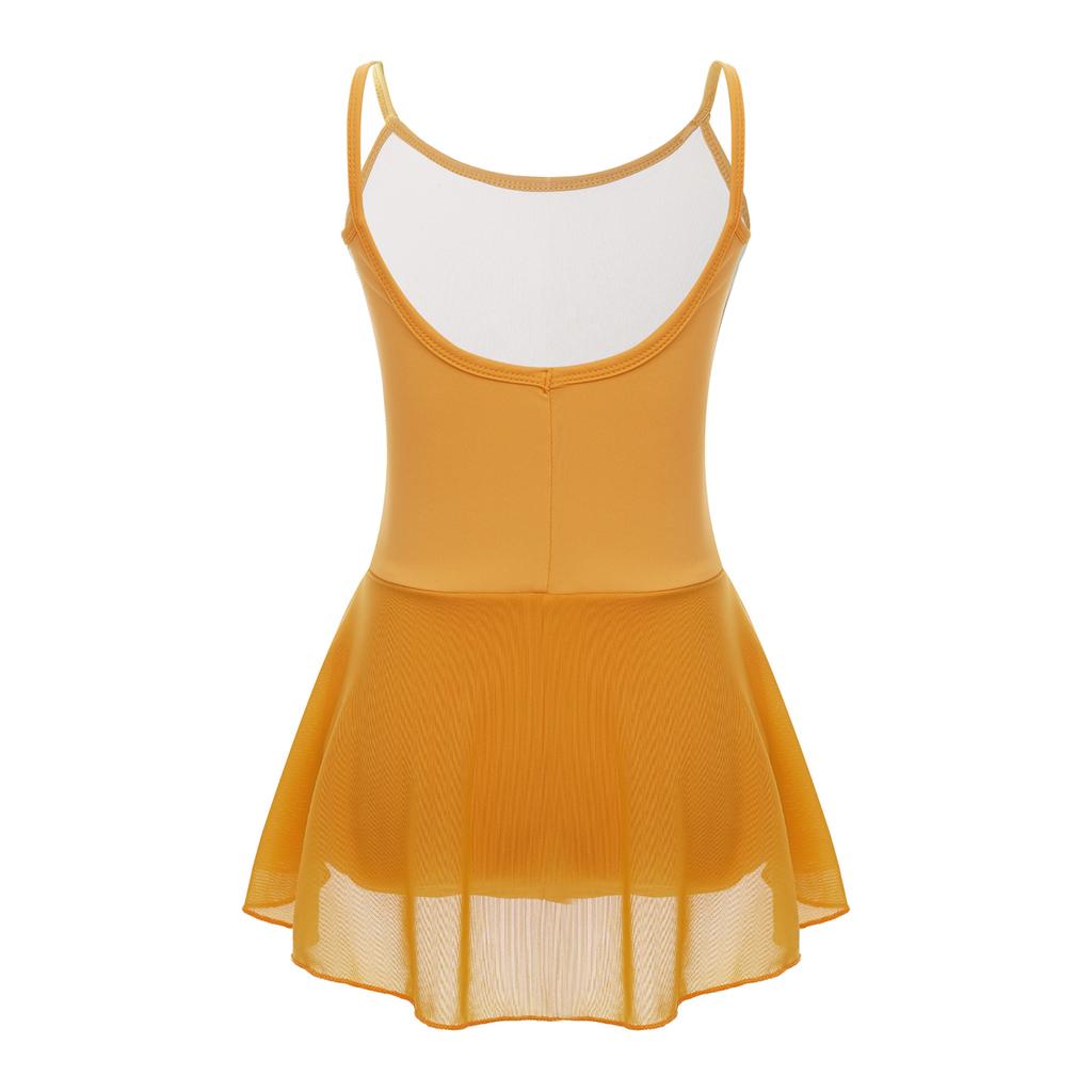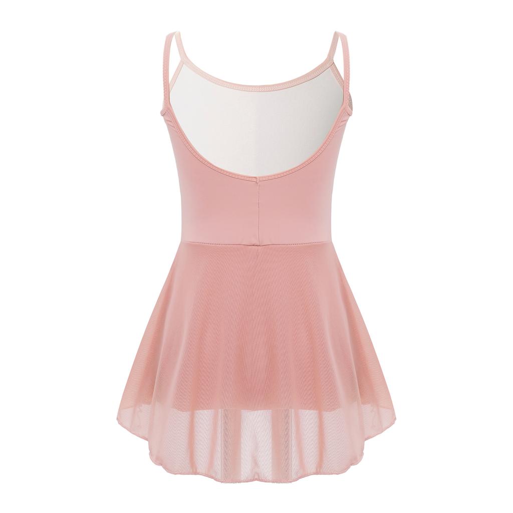 Балетный купальник без рукавов для девочек с бретельками и глубоким вырезом на спине, с юбкой для тренировок