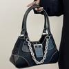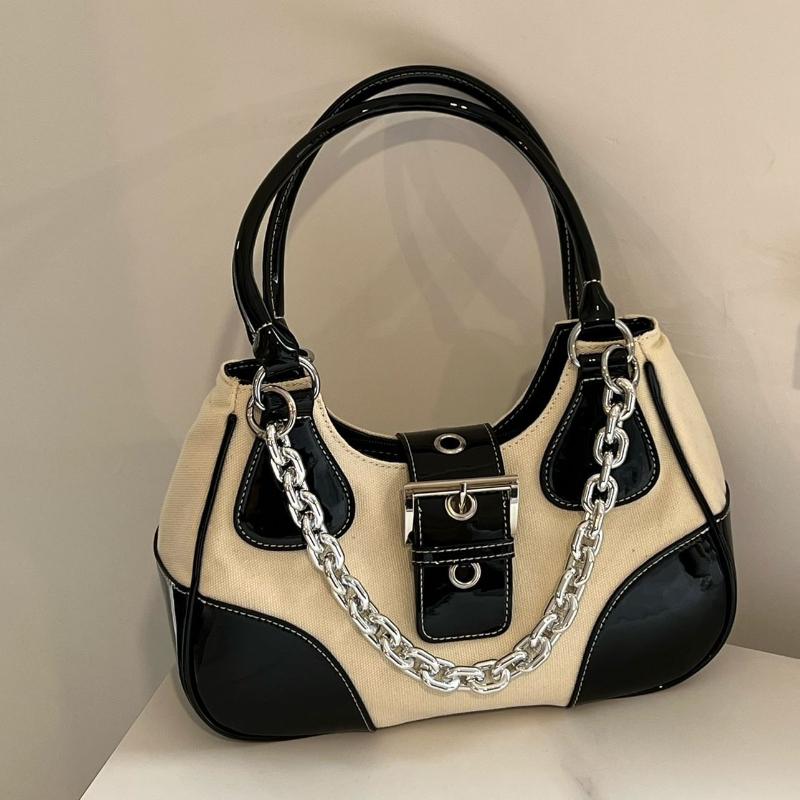 Преппи Стиль Крутая Девушка Металлическая Цепь Панк Мотоциклетная Сумка Кроссбоди На Плечо Сумка Почтальон Сплетенная Ткань Винтажная Холщовая PU Сумка