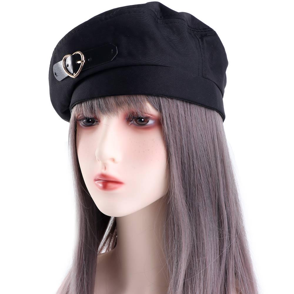 Elegant Korean Girls Female Keep Warm Winter Love Heart Leather Buckle Beret Painter Hat Women Caps