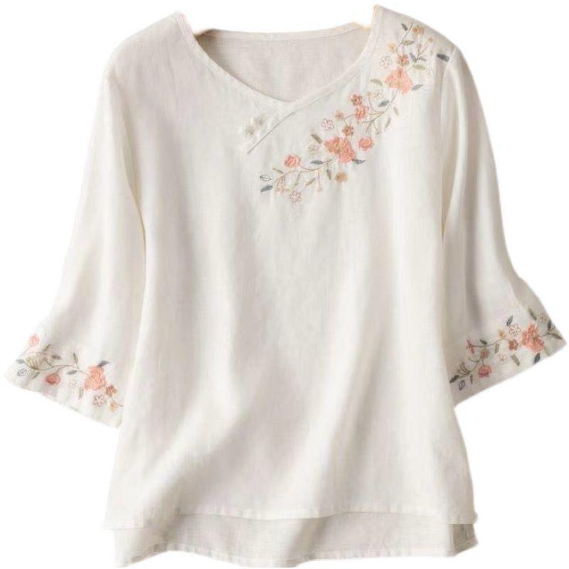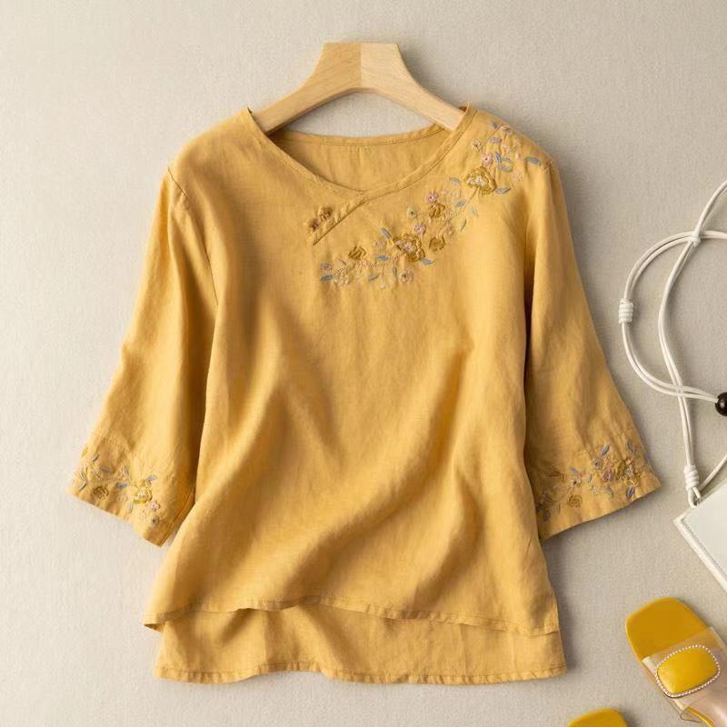 Новая летняя складная вышитая рубашка в китайском стиле для женщин, литературная ретро хлопково-льняная свободная вышитая блузка для женщин