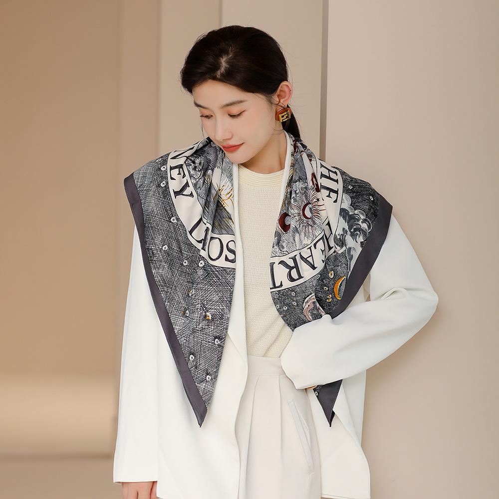 Новый квадратный шарф с дизайном буквенной строчки, ретро, повседневный, тонкий, солнцезащитный платок-шарф