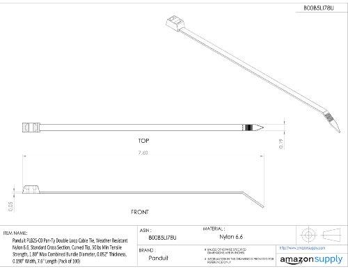 Panduit PLB3S-C0 Двухпетлевая кабельная стяжка Pan-Ty, Нейлон 6.6, устойчивый к погодным условиям, Стандартное сечение, Изогнутый кончик, Минимальная прочность на разрыв 50 фунтов, Макс. 3,00"