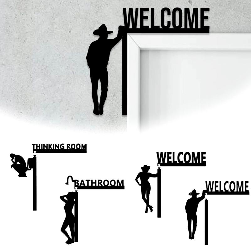 1 шт. Знак на дверь туалета Современный настенный Минималистичный Деревянная рамка Домашний декор Подвеска на дверь ванной комнаты Черный силуэт