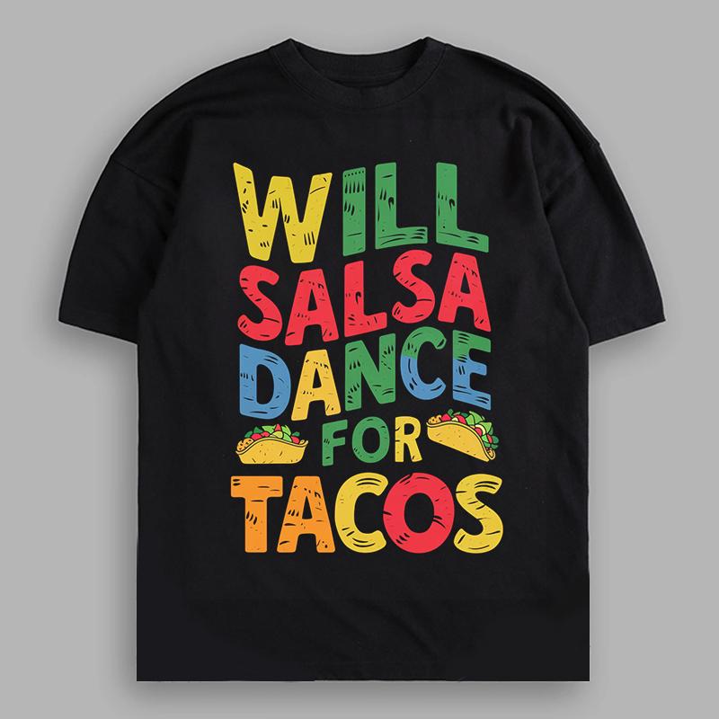 Футболка унисекс из высококачественного хлопка с коротким рукавом и надписью «Танец для тако» свободного кроя