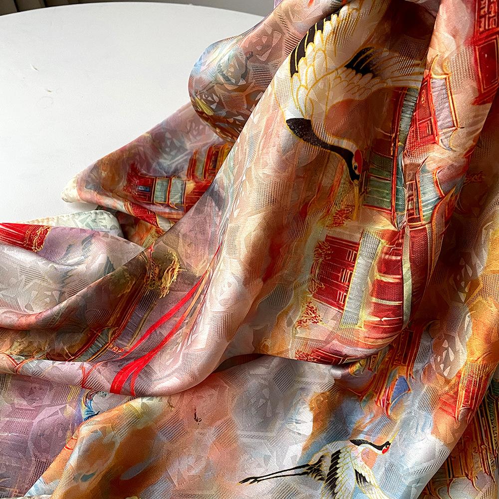 Новый шелковый платок с принтом в китайском стиле для женщин Высококачественный легкий роскошный ретро шаль Квадратный платок Платок для защиты от солнца