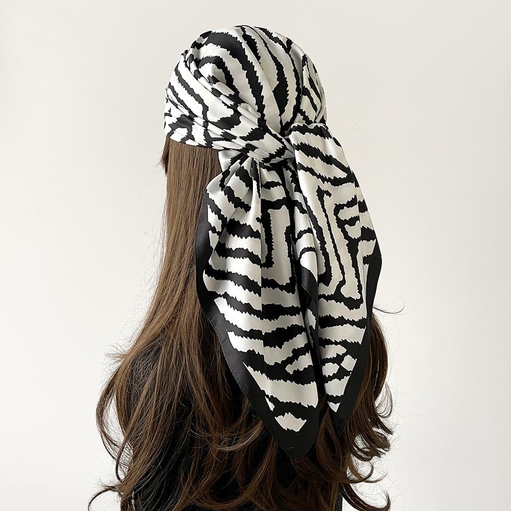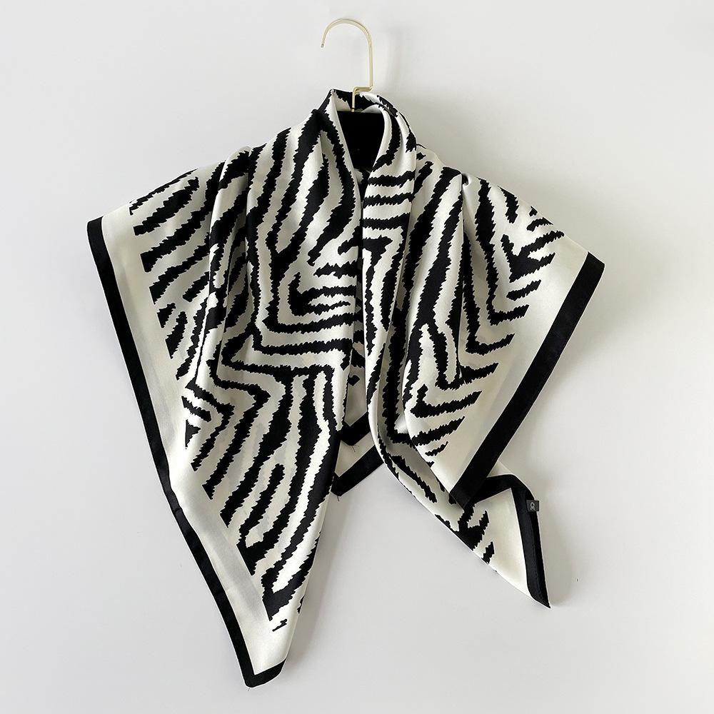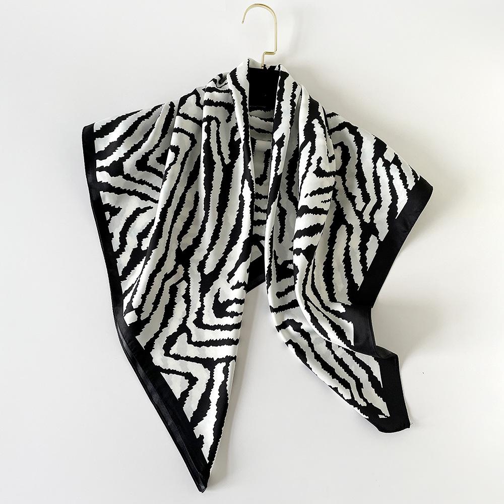 Новый весенне-летний универсальный платок с животным принтом, черно-белый простой квадратный шарф, шарф из искусственного шелка, твиловый шарф для женщин