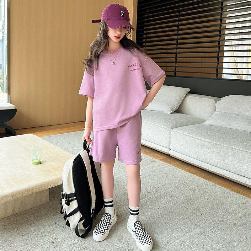Летняя детская одежда для девочек Повседневная спортивная одежда для девочек Детские шорты с короткими рукавами среднего и большого размера Комплект из двух предметов