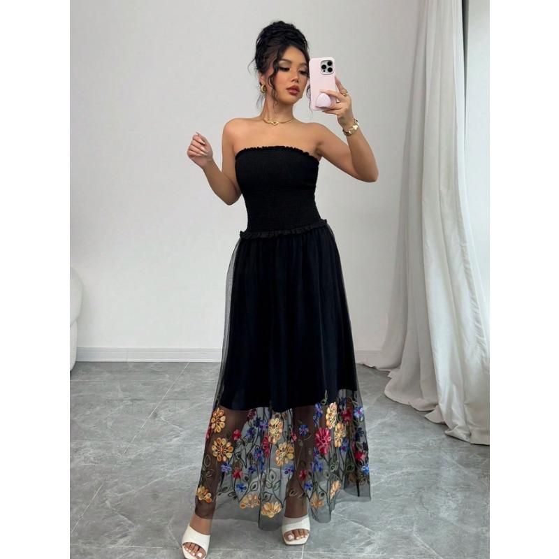 Летнее сексуальное женское платье без бретелек с цветочной вышивкой — повседневное и простое