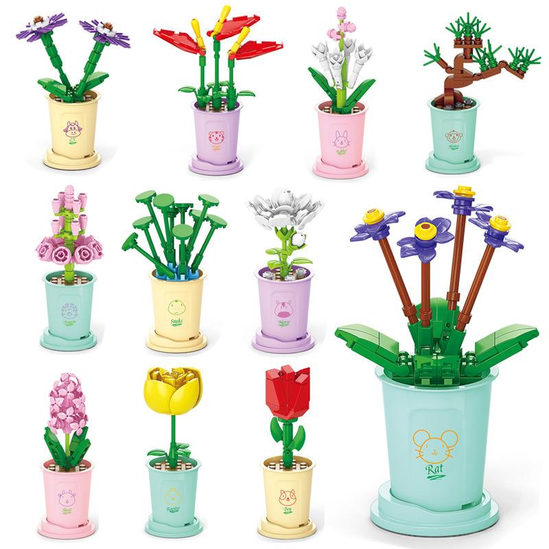 Детская головоломка из мелких строительных блоков, имитация цветка, строительные блоки из роз, модельные игрушки