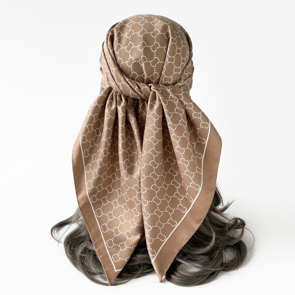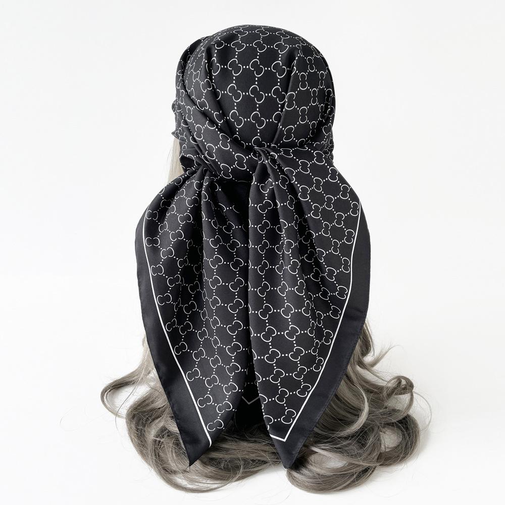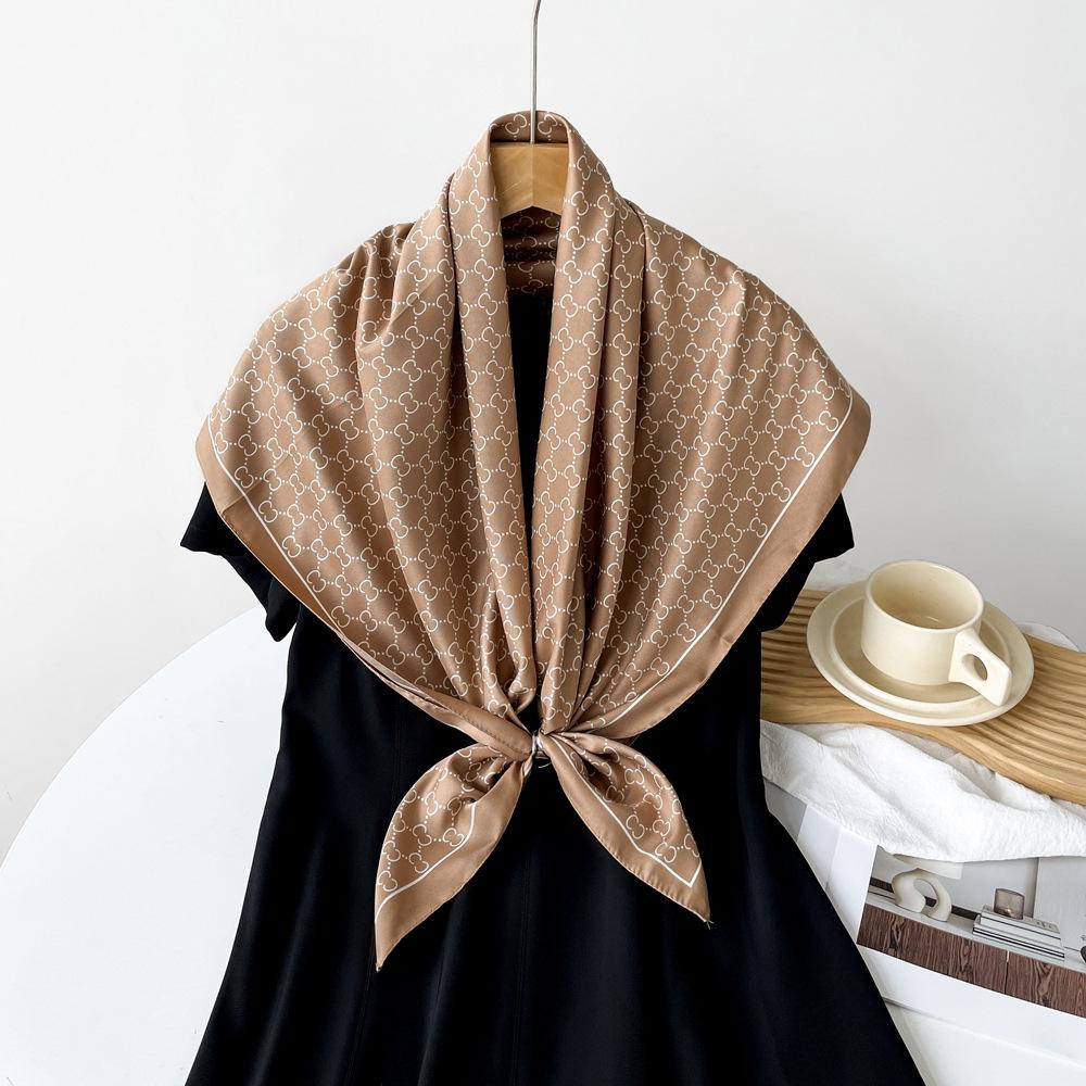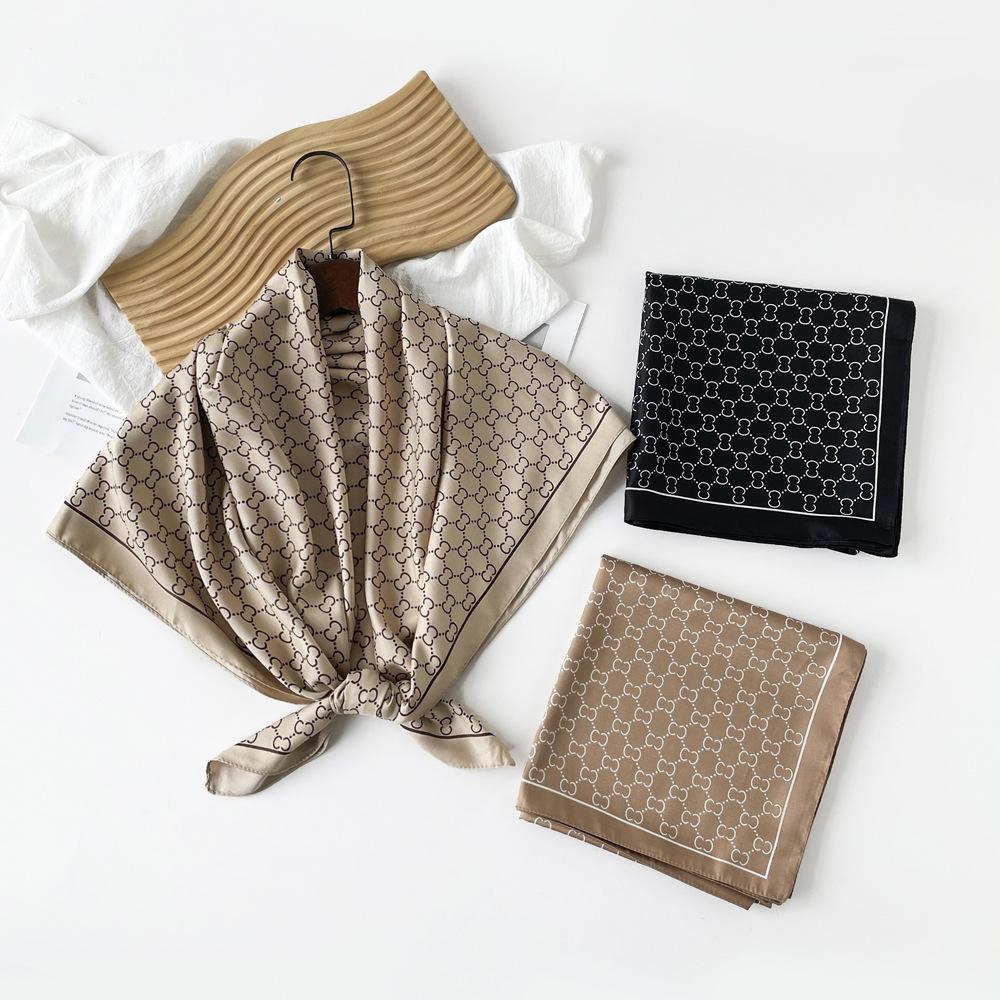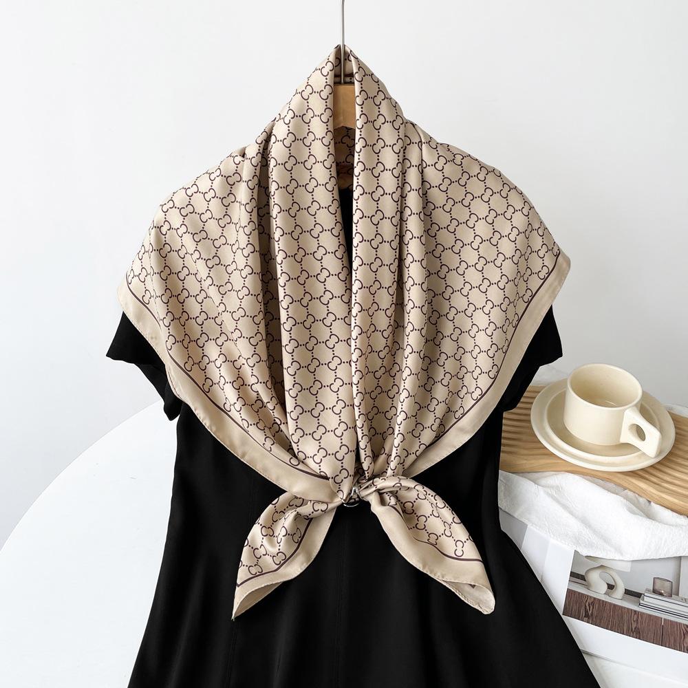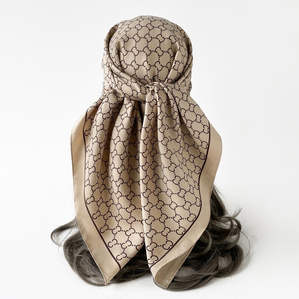 Квадратный шарф Двойные буквы C Модный Высококлассное ощущение Легкий и дышащий шелковый шарф Тонкий стиль Шарф-шаль из искусственного шелка