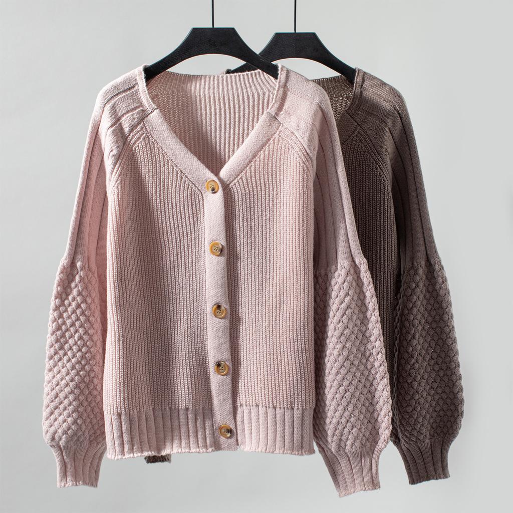 Осень и зима новый однотонный вязаный кардиган на пуговицах куртка повседневный свободный свитер с рукавами-фонариками для женщин