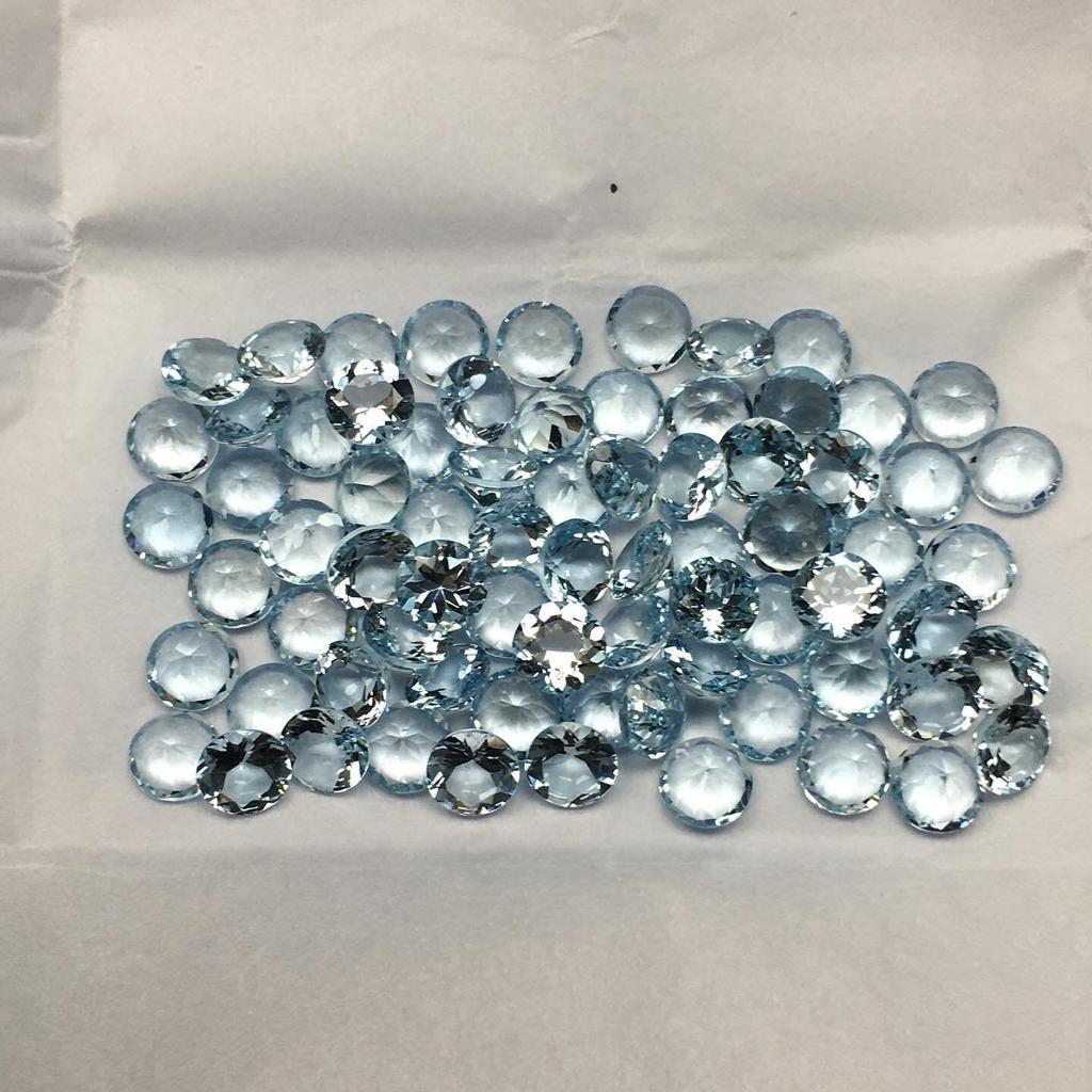 Красивый натуральный аквамарин калиброванного размера, аквамарин круглой огранки, ограненный драгоценный камень, лот россыпью аквамаринов.