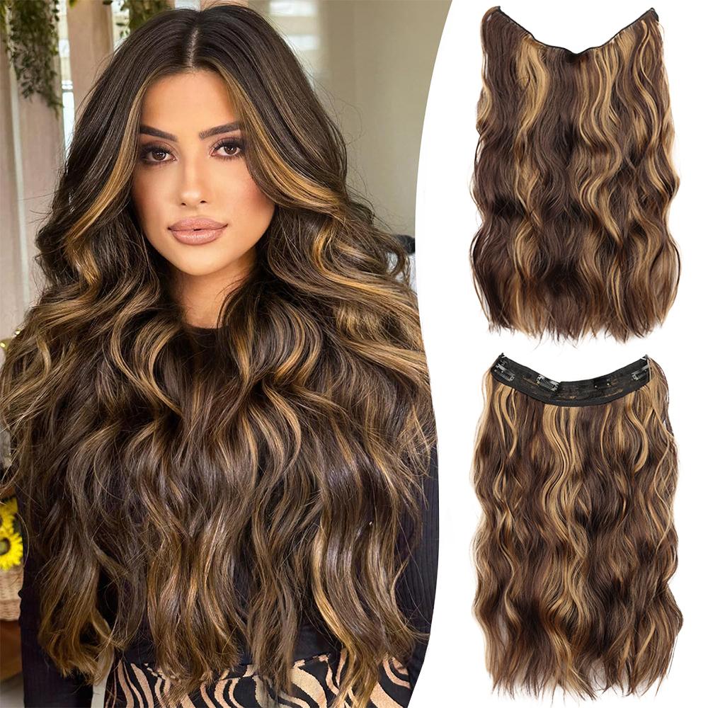 XINRAN Синтетические невидимые клипсы на проволоке для наращивания волос, длинные волнистые, прозрачная регулируемая повязка на голову, накладка для женщин для повседневной носки