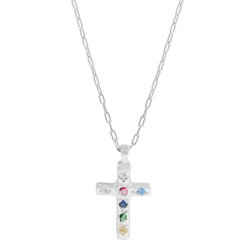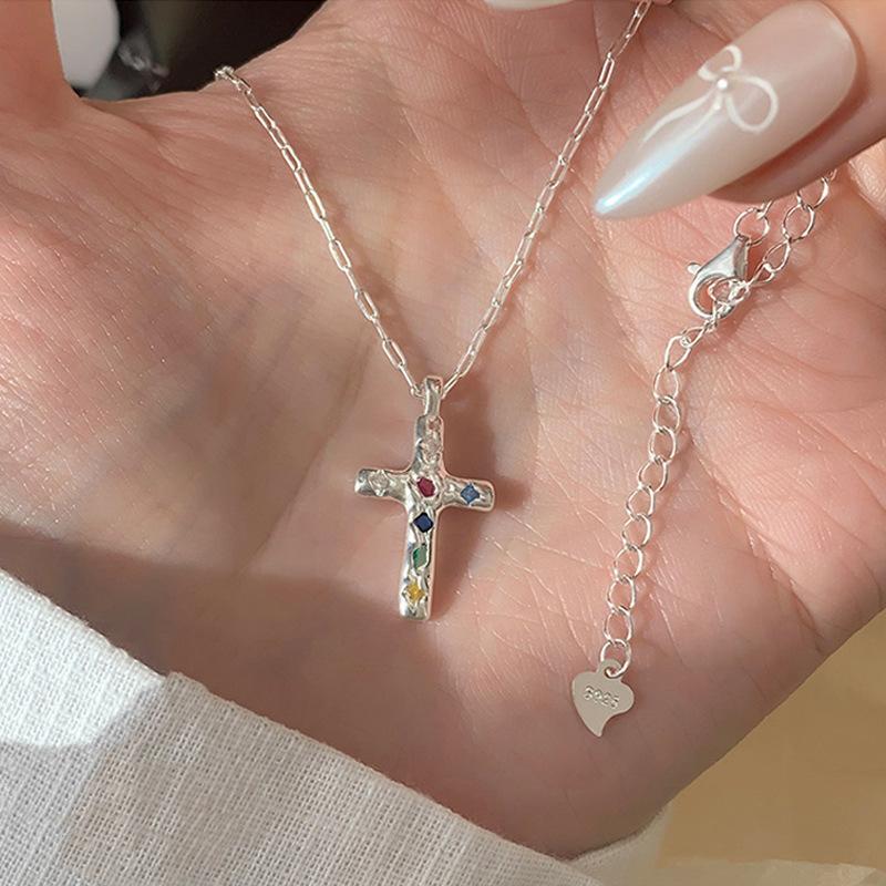 Ожерелье с цветным цирконием и крестом, кулон с текстурой, цветной бриллиантовый крест, парная цепочка на ключицу