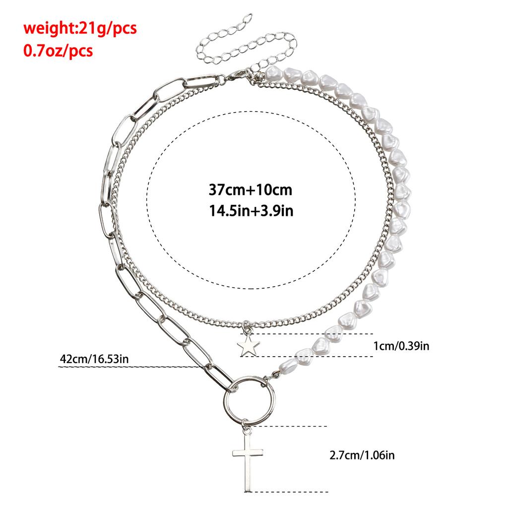 Аксессуары, винтажное ожерелье из искусственного жемчуга с подвесками в виде звезды для женщин, креативное двухслойное ожерелье в виде креста