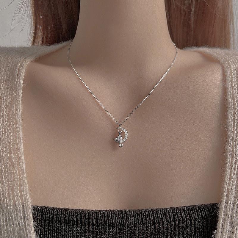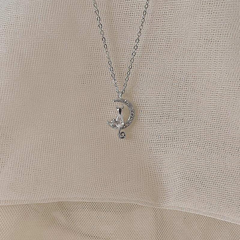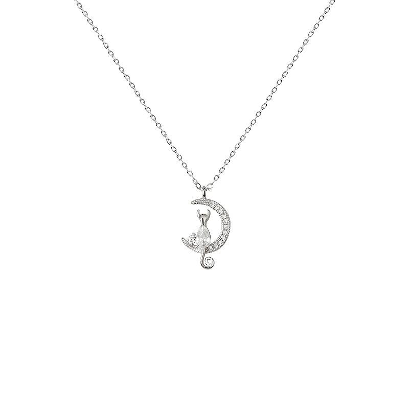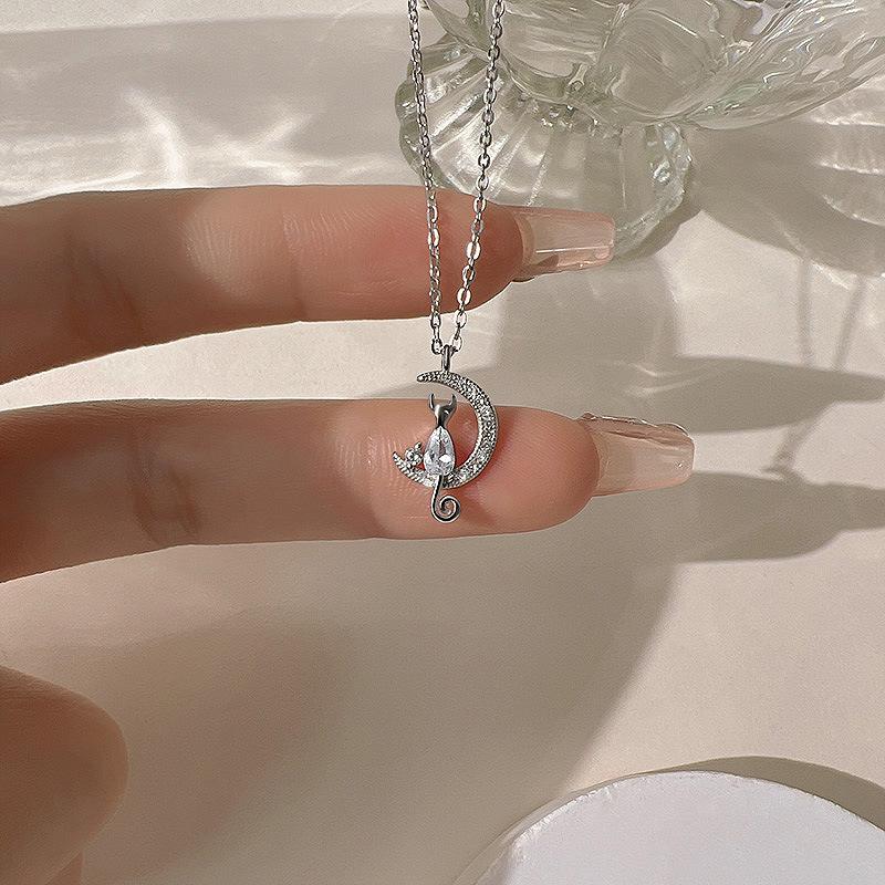 Нежное ожерелье «Лунный кот», милое, с кротким нравом, исцеляющая шейная цепочка, сверкающий бриллиант, лунный кот, любовь, цепочка для ключицы