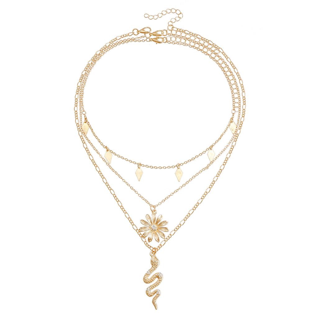 Аксессуары Богемское Солнце Цветок Ромб Змея Подвеска Ключичная Цепочка Легкая Роскошь Многослойное Ожерелье