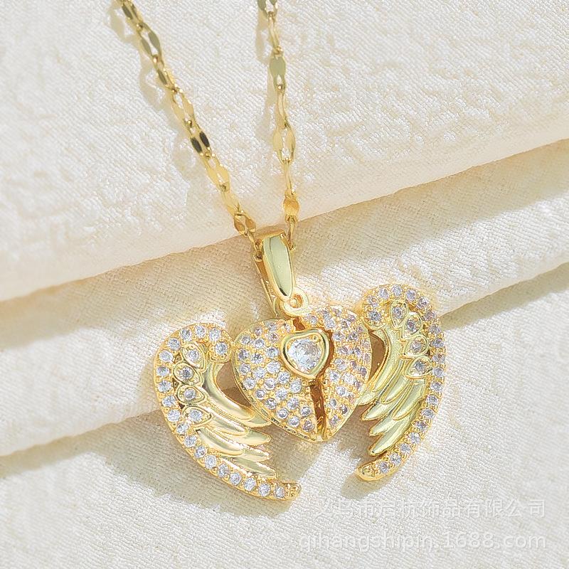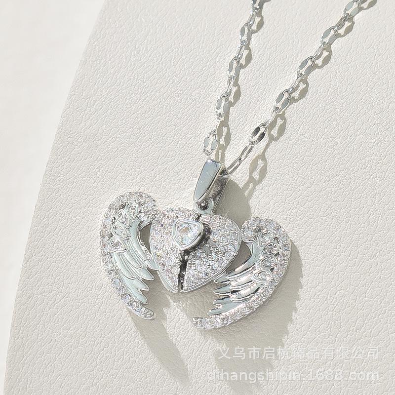 Титановая сталь Любовное ожерелье Женское Старшее Креативная личность Универсальный Открывающийся и закрывающийся Кулон в виде крыльев ангела Ювелирное изделие