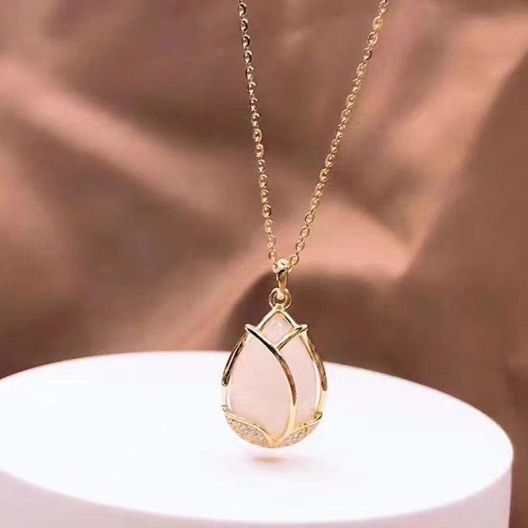 Ожерелье-тюльпан опал женский дизайн простой универсальный циркониевый кулон ключичная цепочка