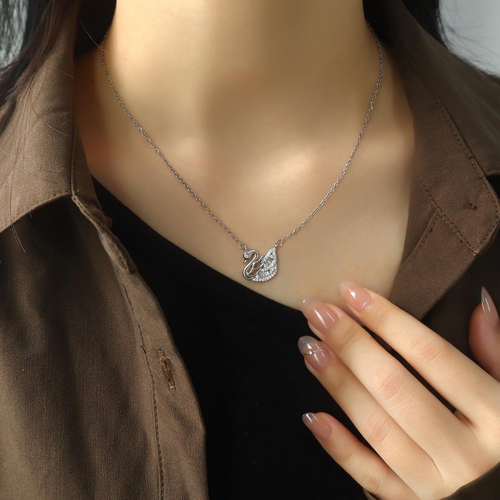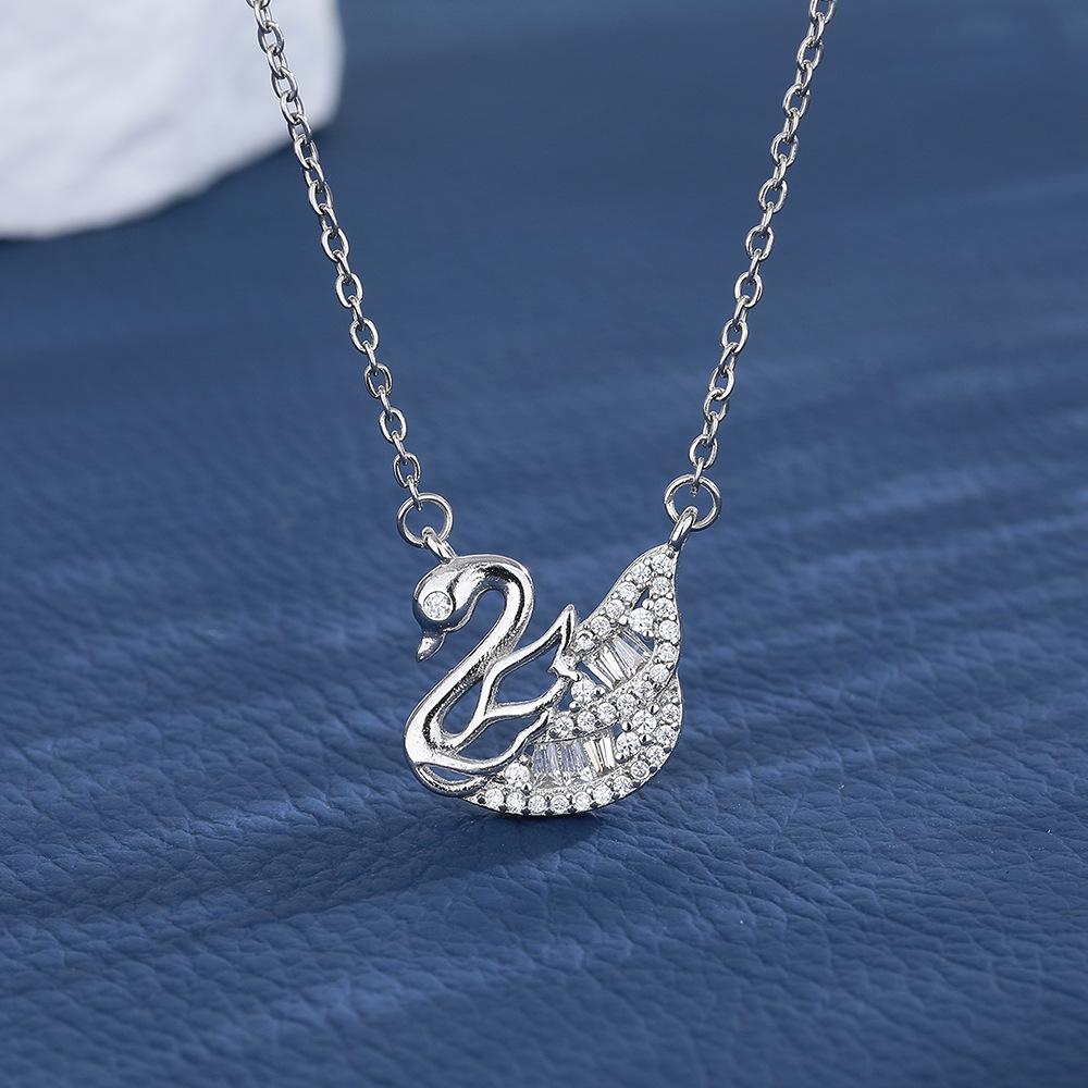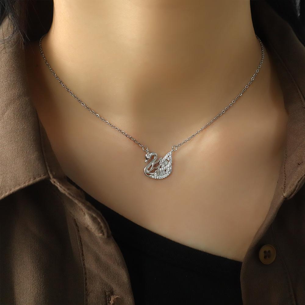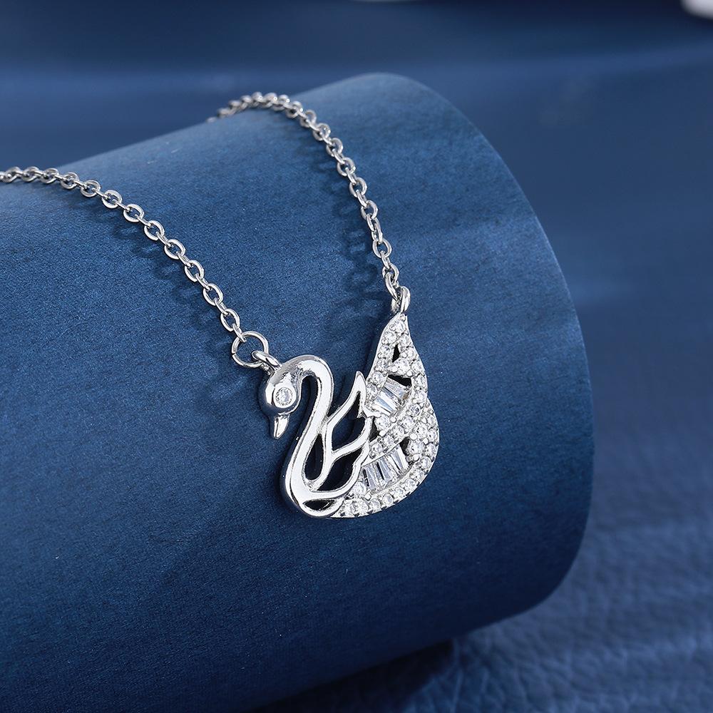 Ожерелье с бриллиантами в виде белого лебедя, тот же легкий роскошный стиль Shijia, цепочка на ключицу с выдолбленным цирконием в виде маленького лебедя с товарами