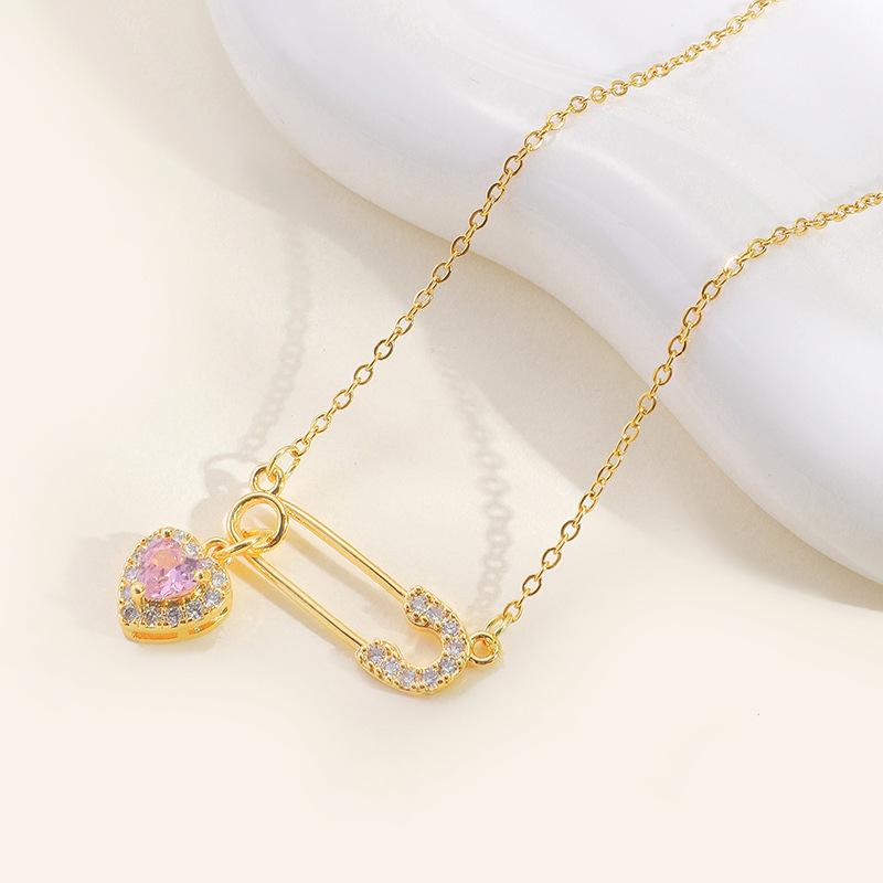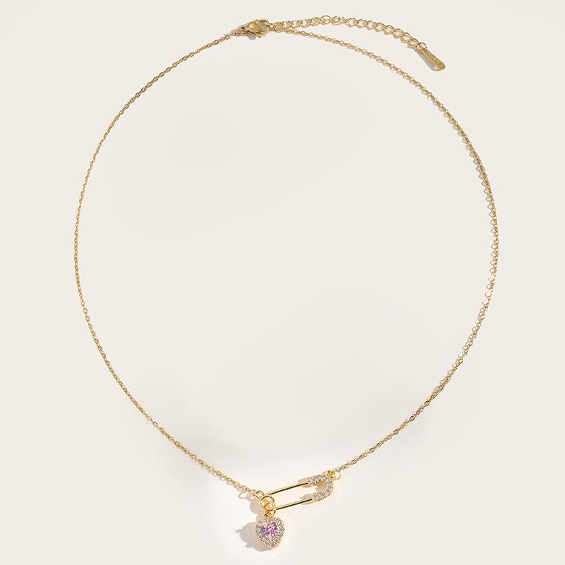 Ожерелье Love из титановой стали, легкое, роскошное, простое, с розовым сердечком и цирконием, цепочка на ключицу