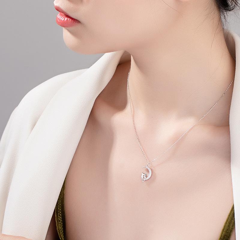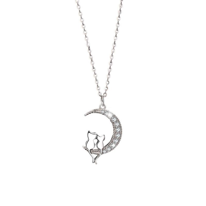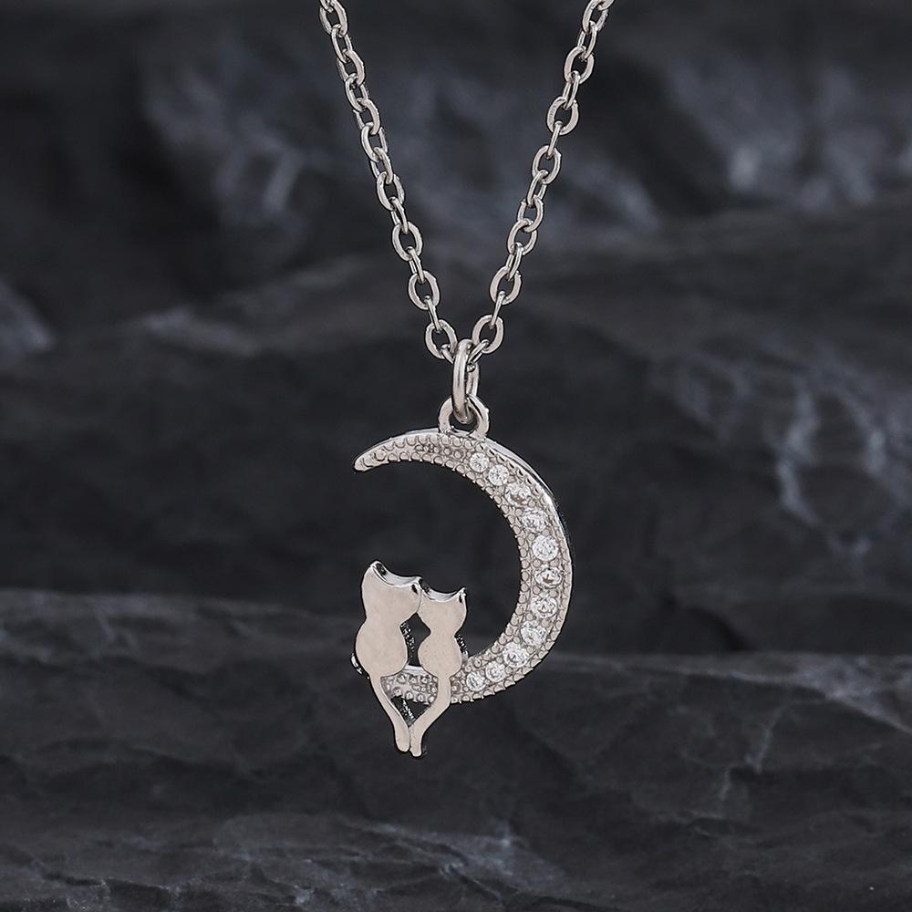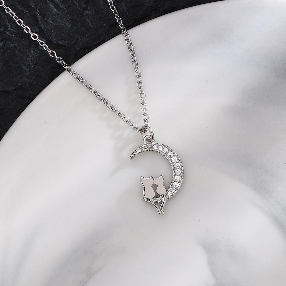 Ожерелье 'Кот на Луне' с подвеской 'Товары', женское креативное циркониевое колье-цепочка на ключицу 'Под Луной'