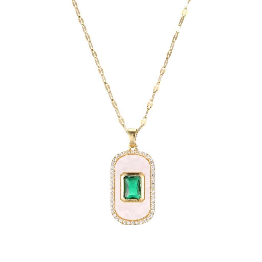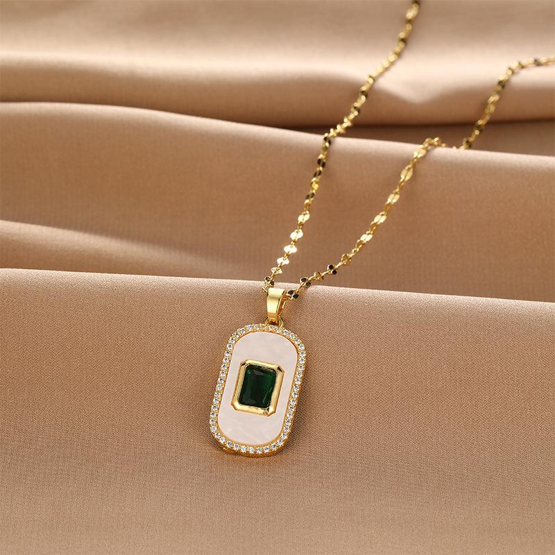 Французское ретро изумрудное овальное ожерелье женское личность высокая универсальная трендовая квадратная подвеска из перламутра шейная цепочка 5