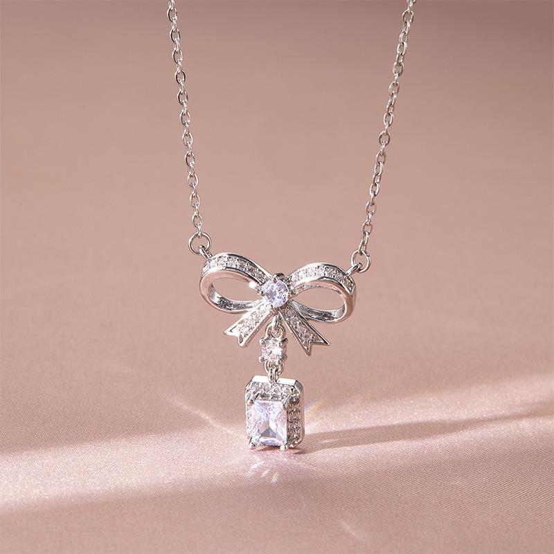 Ожерелье-бант Женское Премиальное Чувство Простое Повседневное Универсальное Подвеска с Квадратным Бриллиантом Нежная Цепочка для Ключицы