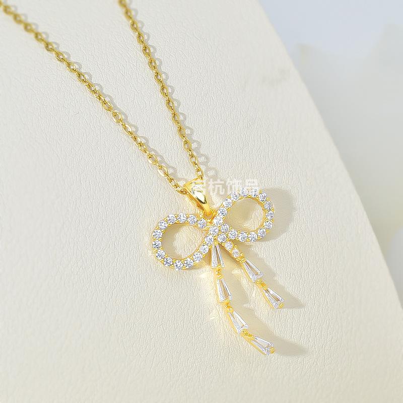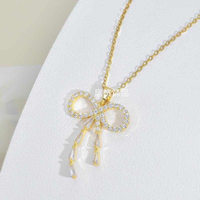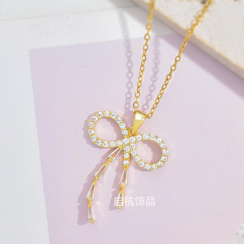 Дизайнерское ожерелье-бант для женщин, простая, высококачественная, универсальная, микро-инкрустированная подвеска, изысканная цепочка на ключицу