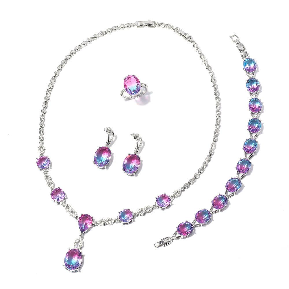 Комплект украшений из радужного циркона, высококачественный комплект, красно-синее постепенное изменение цвета, комплект украшений для невесты, многоцветный
