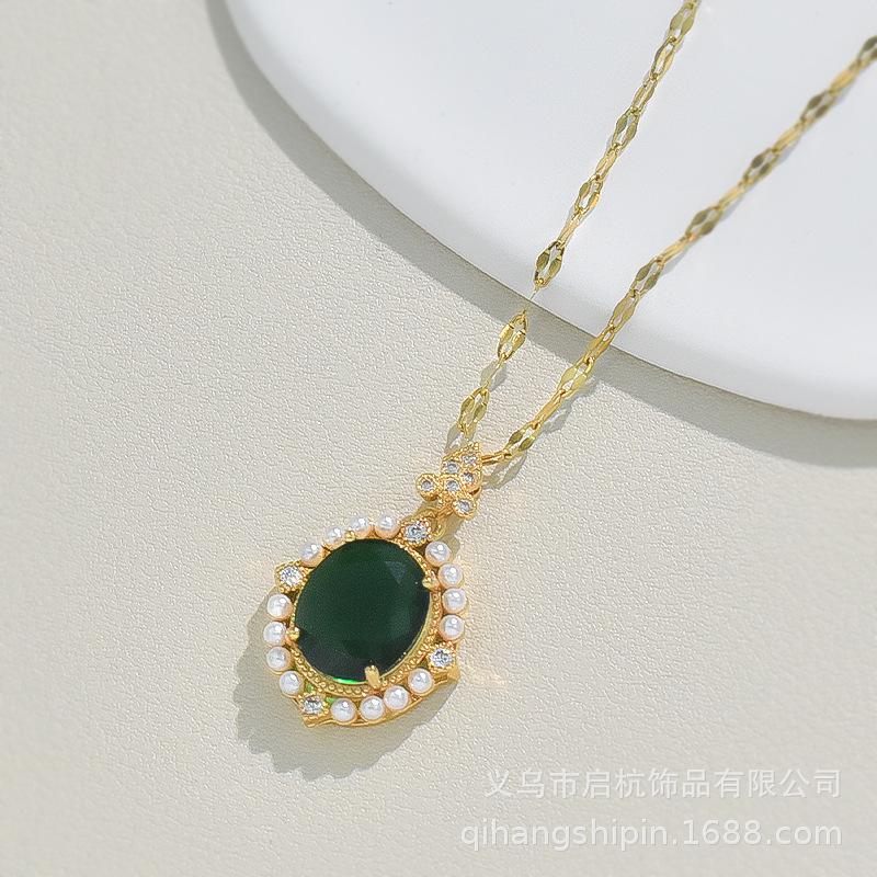 Изумрудное ожерелье женское этнический стиль винтажное универсальное инкрустированное жемчугом подвеска ключичная цепочка аксессуары