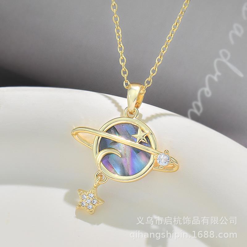 Дизайнерское ожерелье «Планета» Женское Высокое чувство личности Универсальное Микровставленное Подвеска Ключичная цепочка